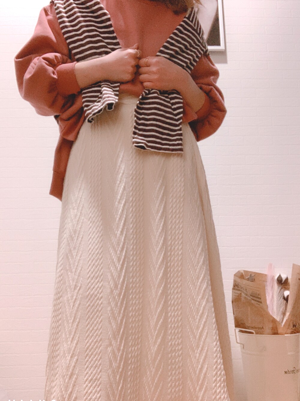 ご覧頂きありがとうございます🐈⬛🐾 いつも、いいね・お気に入り登録して下さる方々🧸💛 ありがとうございます😌🌿 KOBE LETTUCE×eriさんコラボのスウェット🎀に ボーダーTを肩掛けにしてみました🦓 ピンク×ブラウンで柔らかく🐻🌸 アポロチョコ🍫みたいな色合い🙈 スカートはdearfulのもの🤍 ケーブル編みがコーデのアクセントになります☺️🌷 宜しければ いいね・お気に入り登録 お願い致します🙏🌈