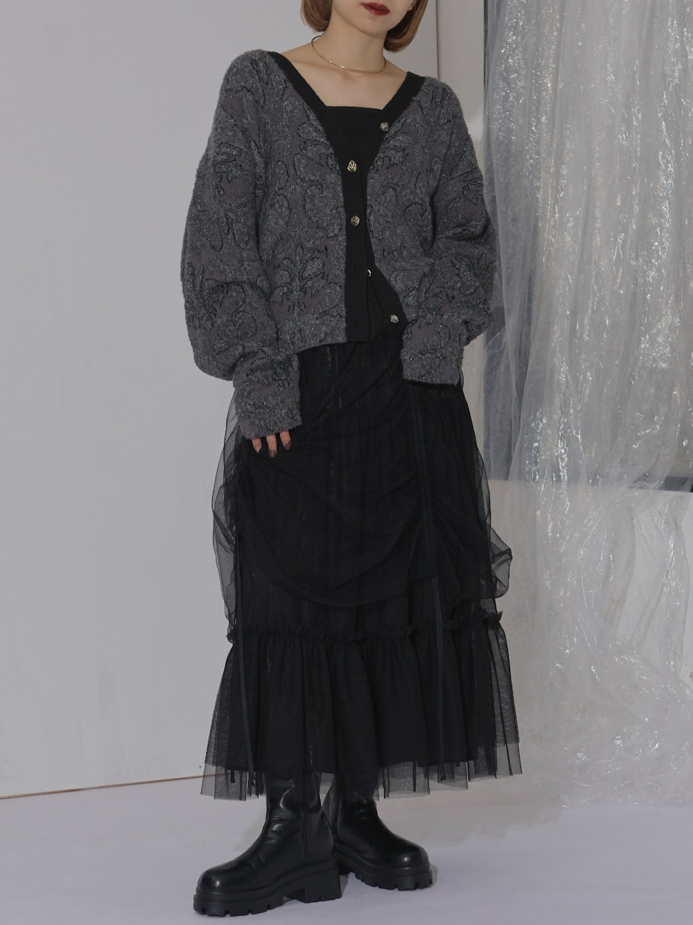 もえか / ecrumのスカート「Drape shirring チュールレイヤードスカート」を使ったコーディネート