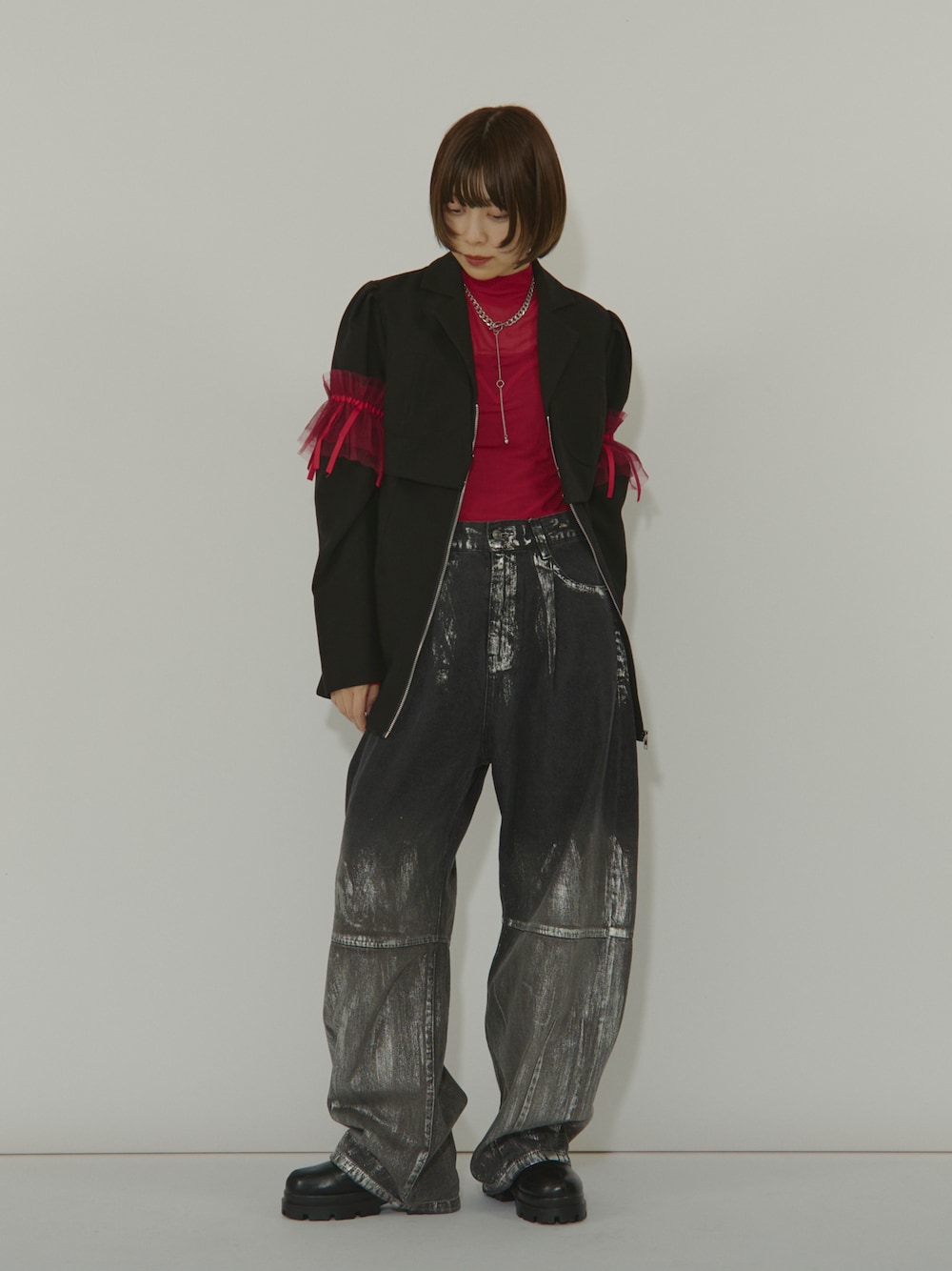 もえか / ecrumのテーラードジャケット「Lady modeレイヤードジップジャケット」を使ったコーディネート