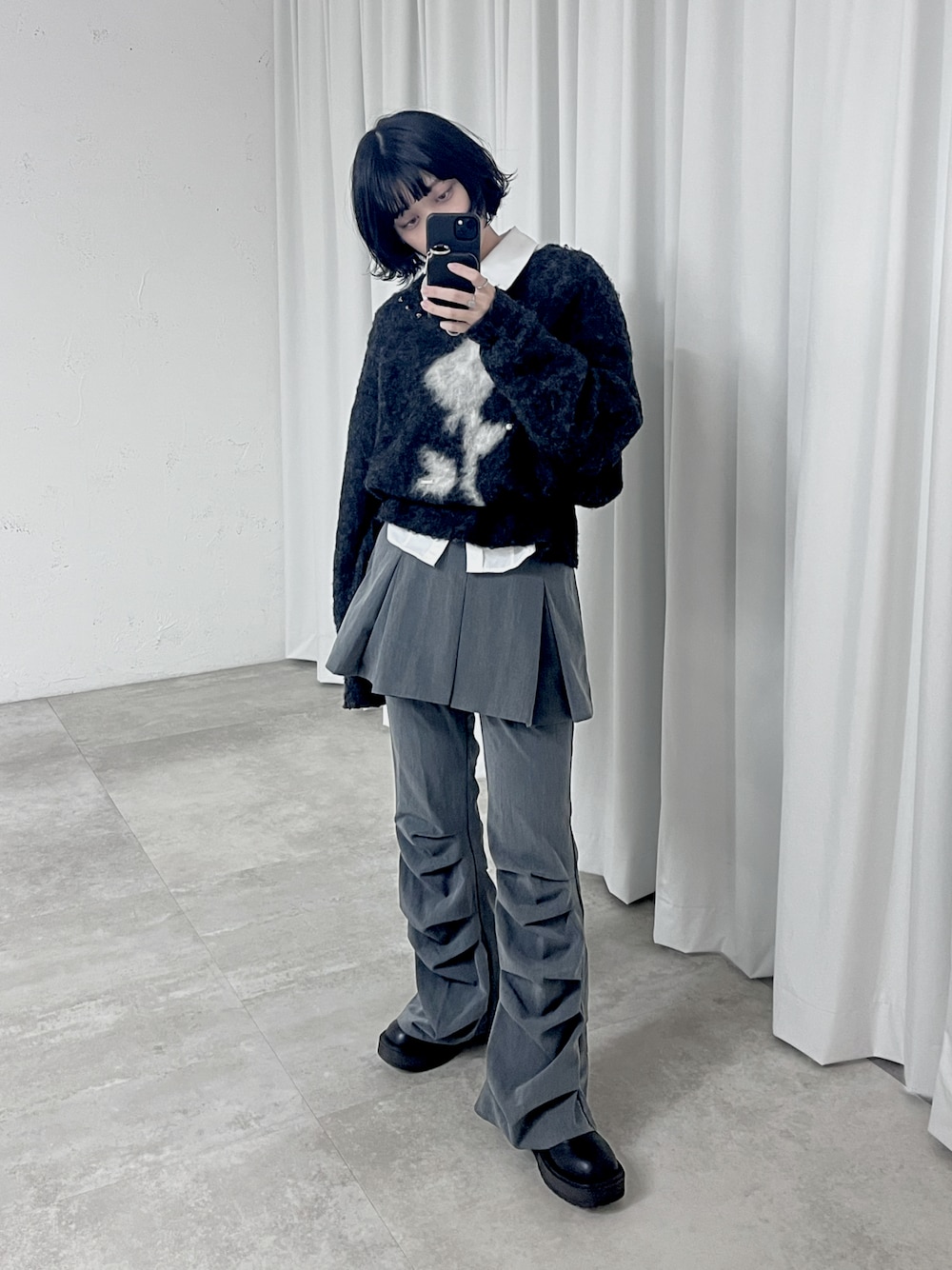 もえか / ecrumのニット/セーター「Brushed jacquard オーバースタッズニット」を使ったコーディネート
