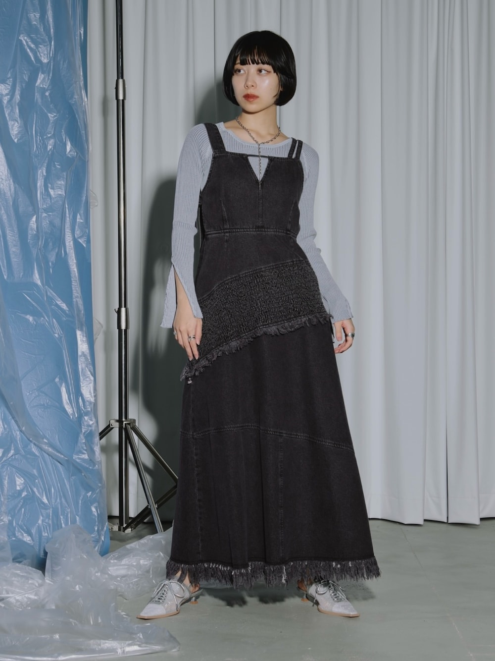 もえか / ecrumのワンピース「lady mode shirring デザインデニムワンピース」を使ったコーディネート