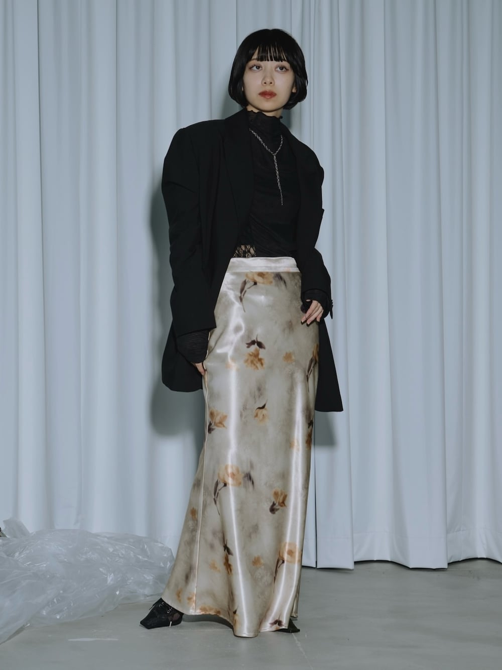 トレンドカラーのバターイエローを、モードに組んだスタイル