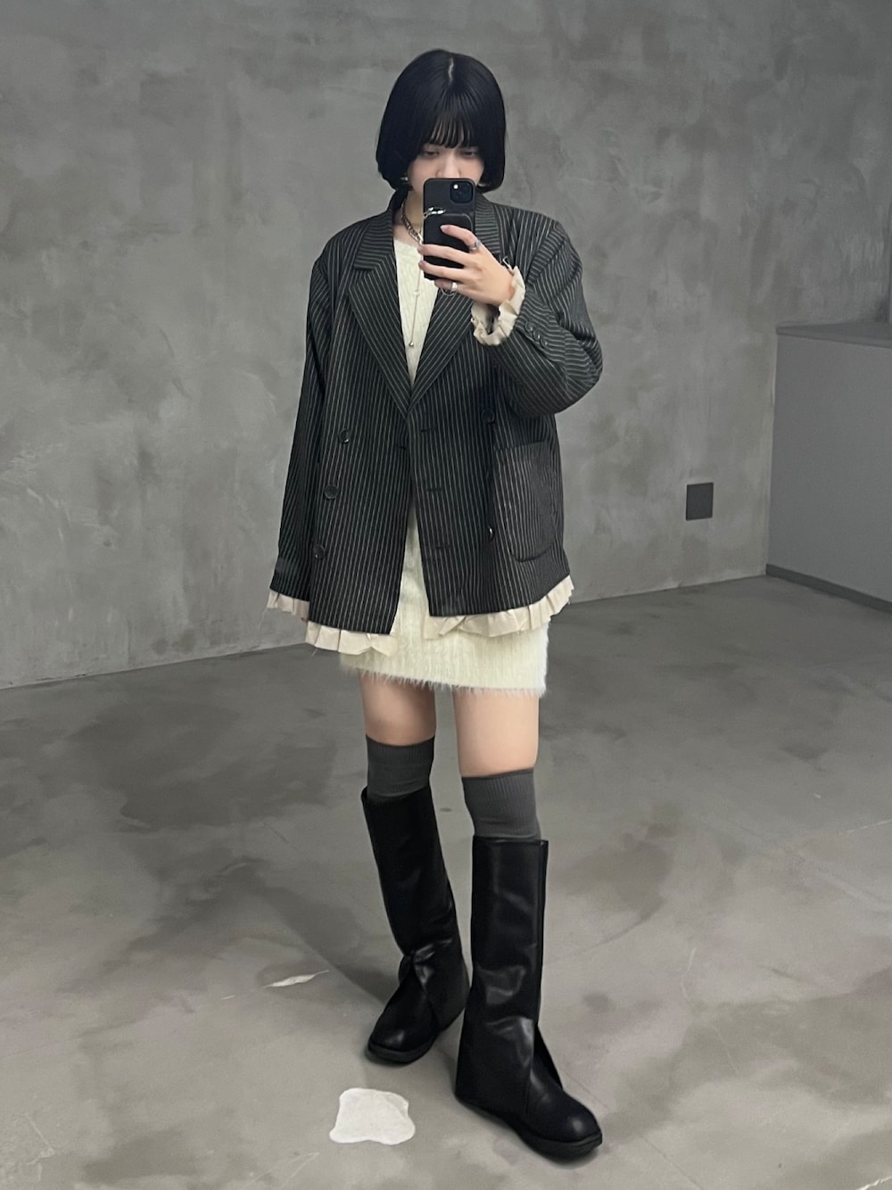 もえか / ecrumのテーラードジャケット「frill layered design jacket / フリルレイヤードデザインジャケット」を使ったコーディネート