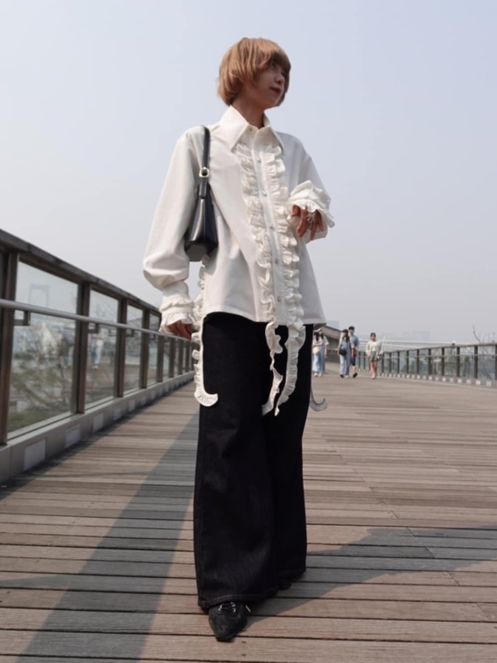 もえか / ecrumのシャツ/ブラウス「Long frill big collar shirt / ロングフリルビックカラーシャツ」を使ったコーディネート