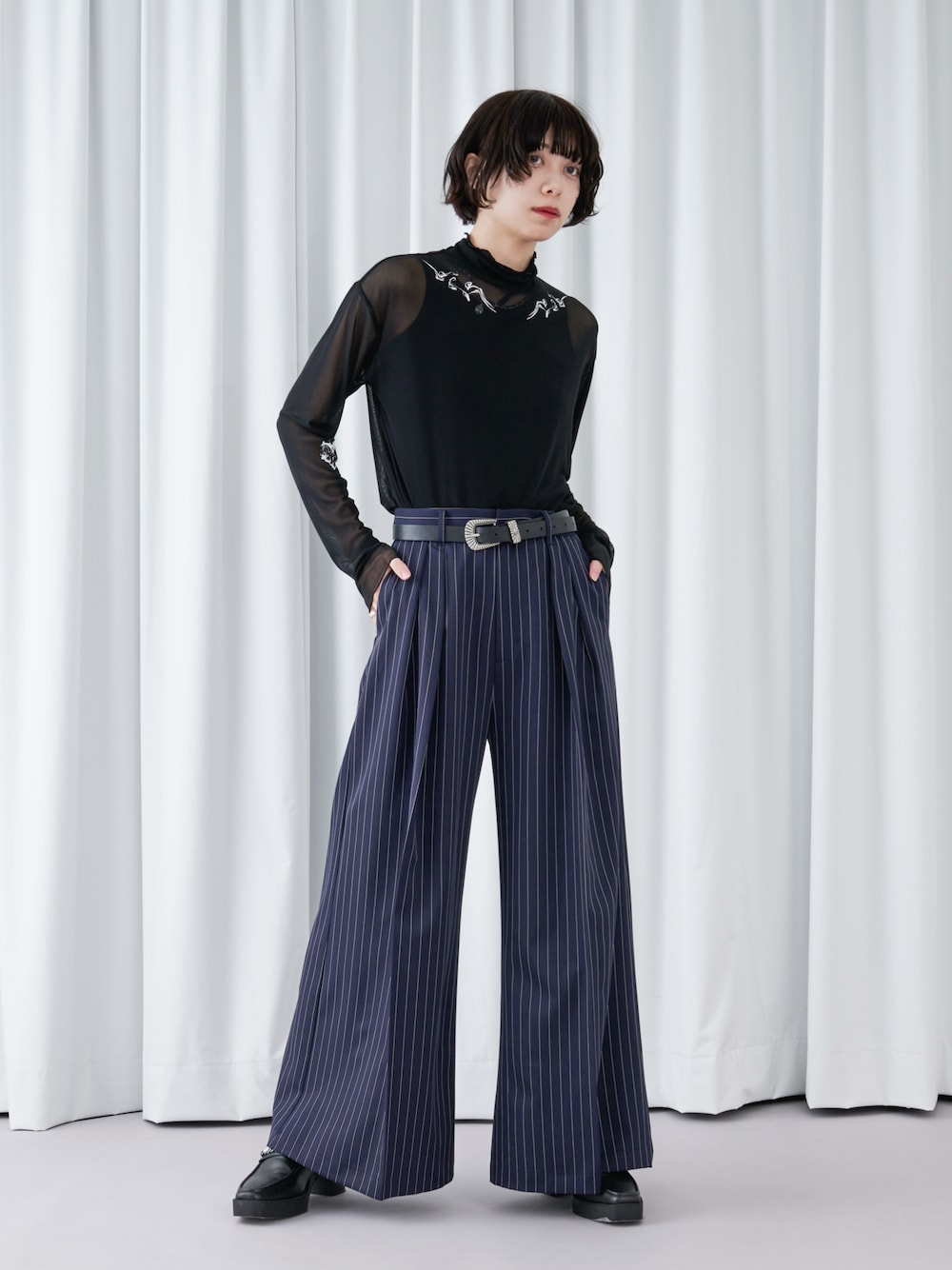 もえか / ecrumのTシャツ/カットソー「【新柄追加】アソートシアーハイネックインナー/サムホール付き」を使ったコーディネート