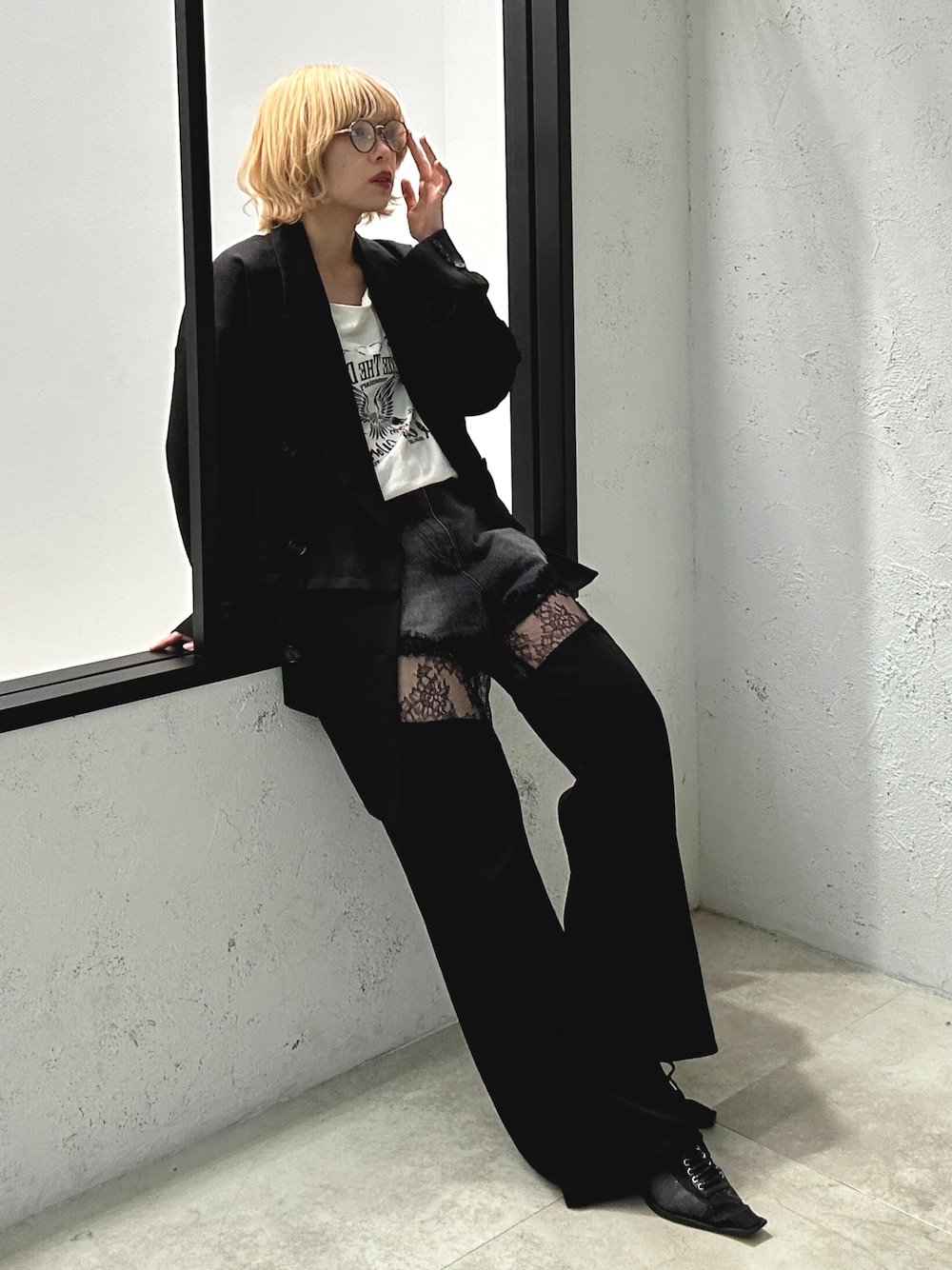 もえか / ecrumのデニムパンツ「デニムレースドッキングパンツ」を使ったコーディネート