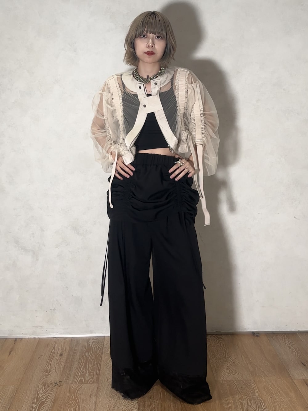 もえか / ecrumのスラックス「drawstring skirt set レースドッキングパンツ」を使ったコーディネート