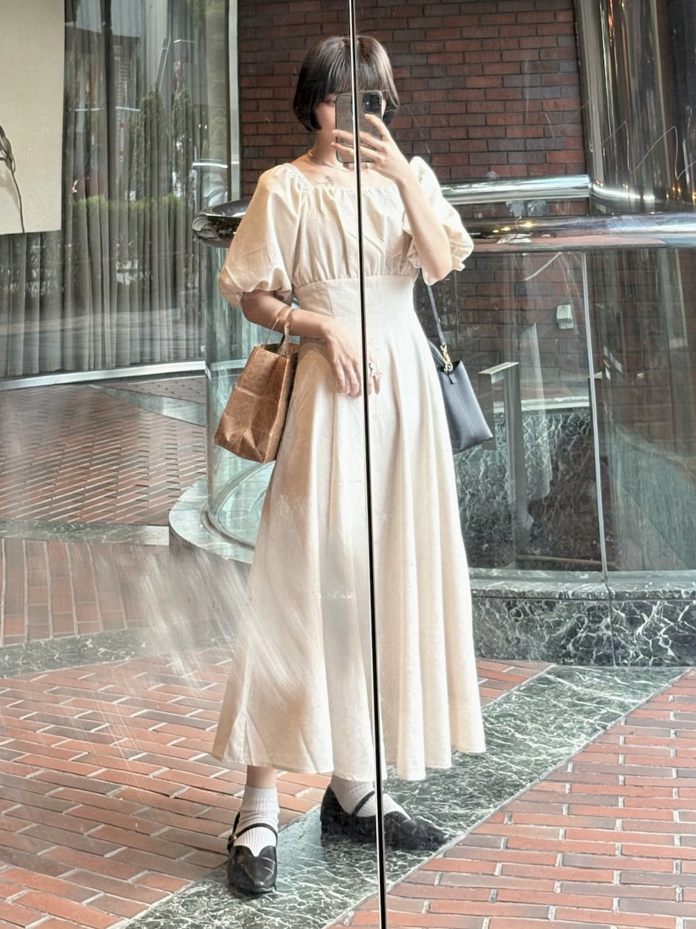 まじで着やすいワンピースなの、、 ウエストも絞れるし、1枚でスタイルアップして見えるの神様。