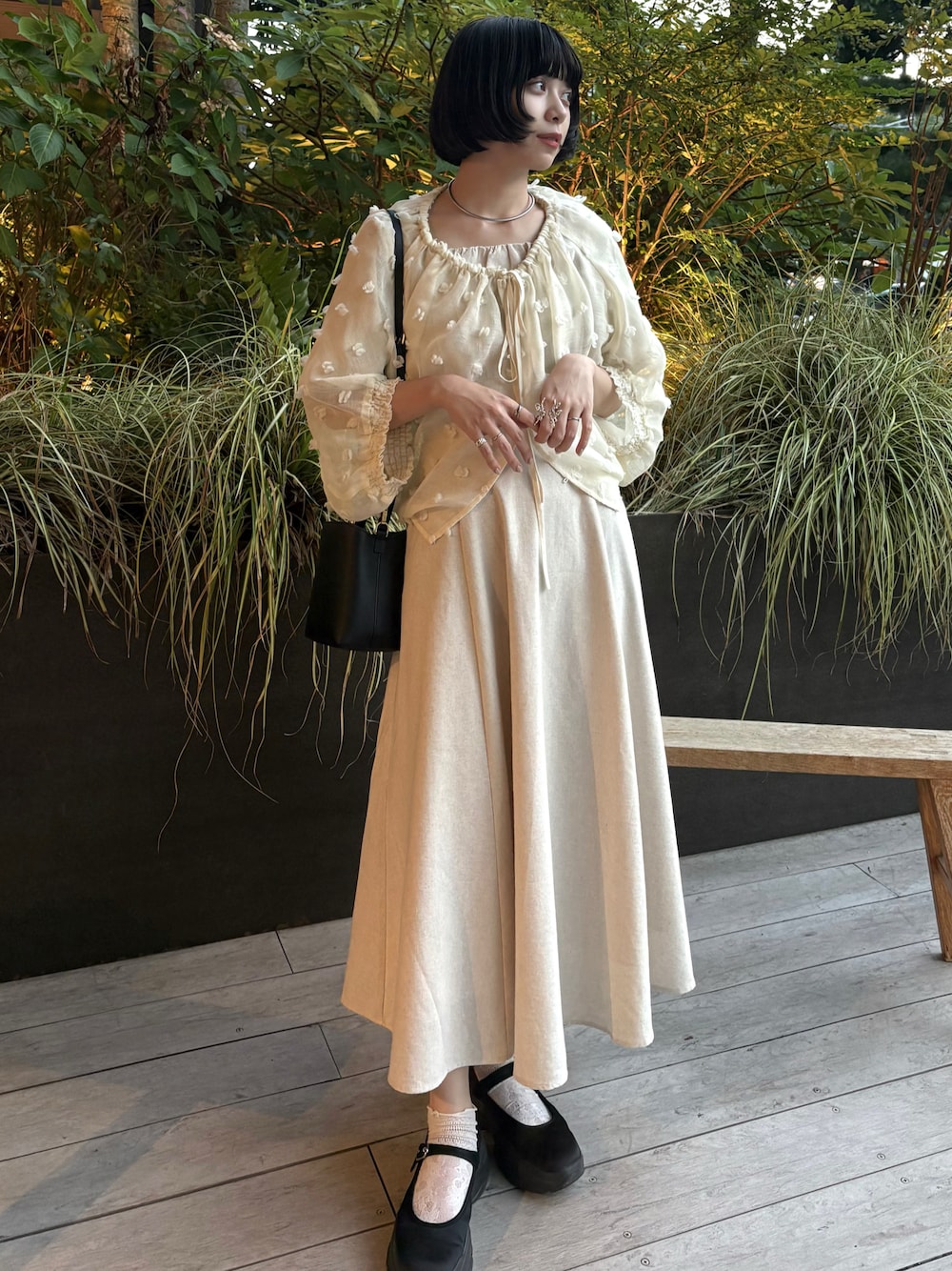 もえか / ecrumのワンピース「2wayリネン混フレアワンピース」を使ったコーディネート