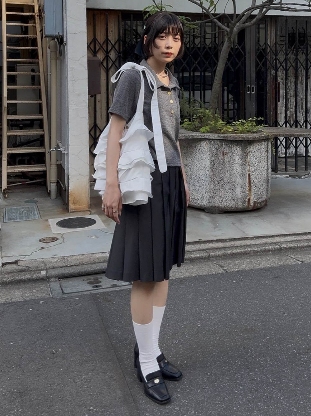 昨年とても流行ったグレーのプリーツスカート、 今年はモノトーンにグレー×ホワイトで締めました。 グレーはカラーものにも相性が良く、 大人っぽく見せてくれる色味なので、 とっても重宝できる…