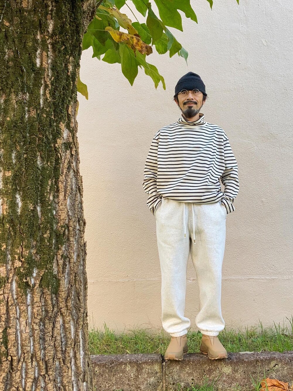 Khakis Collection 2022 靴はやや薄い色味だと思います。 *ご覧頂いている環境によって異なります。 ニット帽 → ワークマン 眼鏡 → Zparts モックネックボーダーバスクシャツ → L'ECHOPPE スウェットパンツ → GU 靴 → MoonStar 810s ET030 PHYLMOC 靴下 → UNIQLO U
