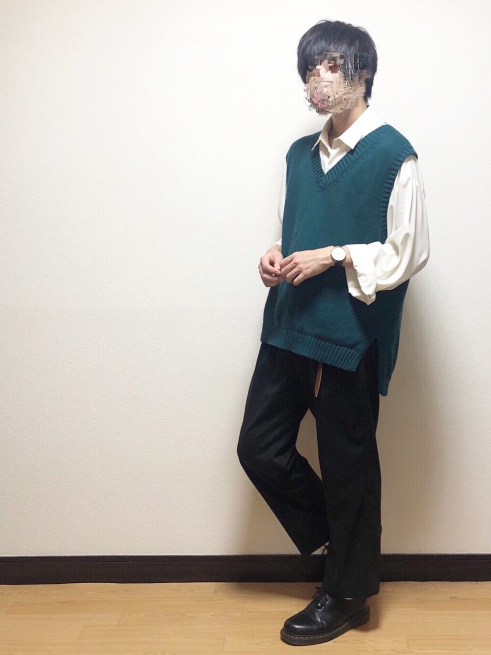 雨の日の図書館デートコーデ!! ・ ・ ・ 久しぶりの更新になってしまいました、、 ・ ・ これからもっと更新頻度増やしていけるよう頑張ります。、 ・ ・ 今回のコーデのポイントはなんといってもこのグリーンのニットベスト!! ・ ・ このニットベスト、実はレディースのなんです!! ・ ・ Instagramでこのニットベストを着ている方がいて可愛いくて即買いしちやいました笑 ・ ・ ニットベストを大きめに着たかったのでXLを購入!!めちゃめちゃ可愛くて気に入ってます!!! ・ ・ トップスに鮮やかなグリーンを使っているため他をモノトーンで抑えました! ・ ・ シンプルなんだけど、サイズ感などで雰囲気がでるコーデになったと思います。 ・ ・ 梅雨の時期で少し肌寒い日なんかにおすすめのコーデです!! ・ ・ ・ ・ ・ ・ ・ knit: XL size shirt: FREE size pants: S size shoes: 26