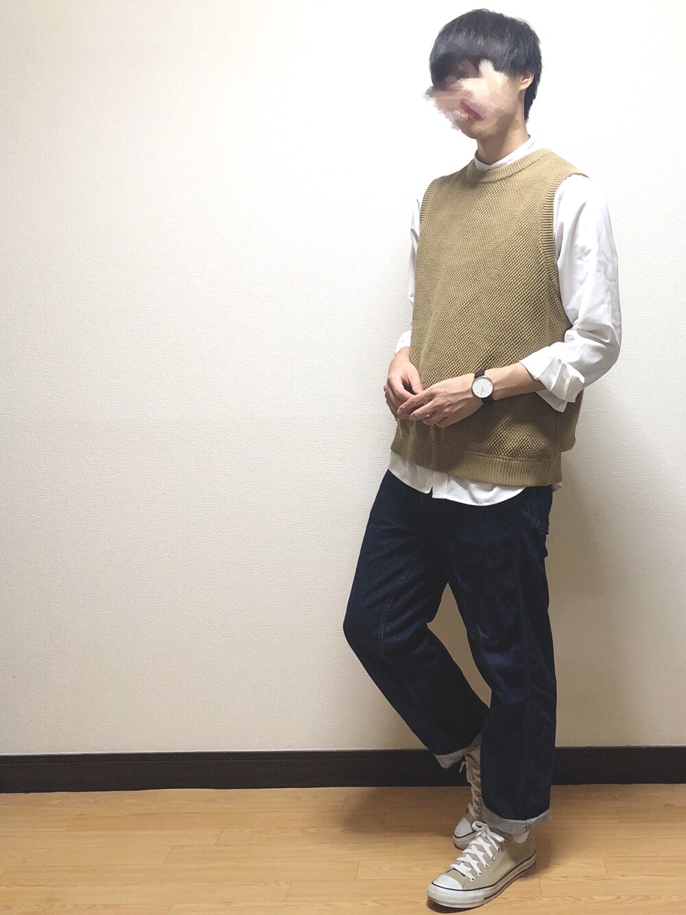 ・ ニットベストとデニムでラフ綺麗目コーデ! ・ ・ 今回はニットベストとデニムを使って綺麗目かつシンプルなコーデを組んでみました!! ・ ・ UNIQLOのデニムのシルエットがほんとに良すぎる!!ワイドフィットなので緩すぎずタイトすぎず!!絶妙なシルエットになってます! ・ ・ ニットベストはお気に入りのクレプスキュール!!少し値は張りますがやっぱり可愛い!!!個人的に持っておいてそんはないかな?!! ・ ・ 中の白シャツはバンドカラーにして首元をスッキリ!これからはオープンカラーシャツよりバンドカラーシャツがくるみたいですね!! ・ ・ 全体的にスッキリになって大人びたコーデになったのかなと思います!! ・ ・ ・ ・ ・ ・ ・ vest: 2 shirt: L size pants: 29 shoes: 26.5