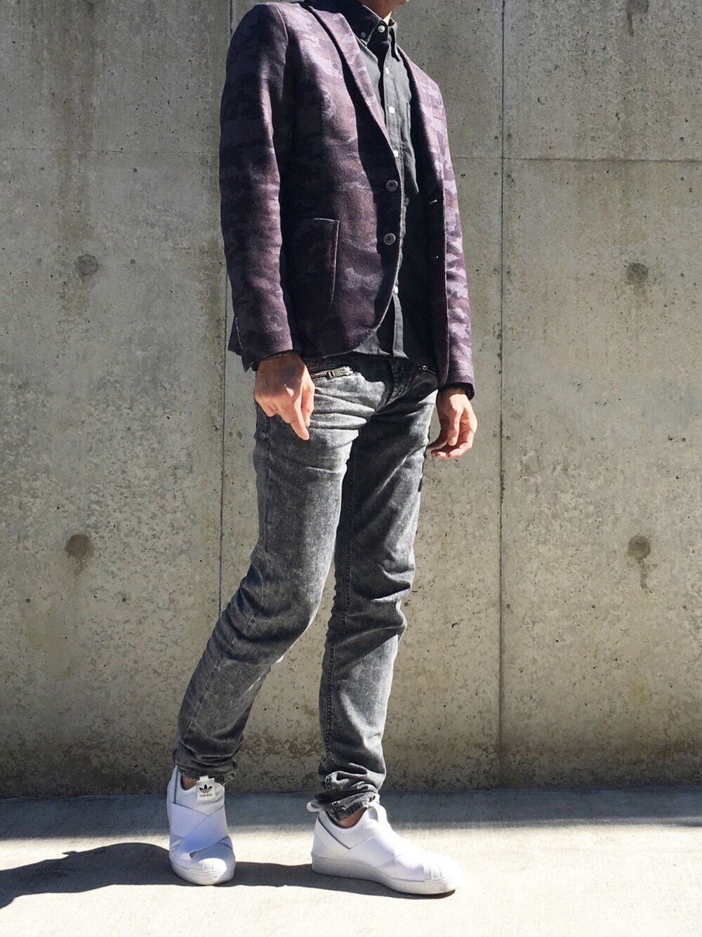 カモフラジャケットとケミカルウォッシュデニムで柄×柄ってわけにはいかないですかね? スーパースタースリッポンが履きやすすぎてこればっかりになってます。 だんだん着やすさとか履きやすさとかそういうの重視するようになってきてるのがなんかなーという感じです… 最近ちょっと疲れていてなかなか皆様のコーデ見れていなくてすみません。イイねもお返しに行きたいのですがなかなか… セーブはお返しできたと思うのですが。しばらくこんな感じになってしまうかもしれませんが、よろしくおねがいいたします。