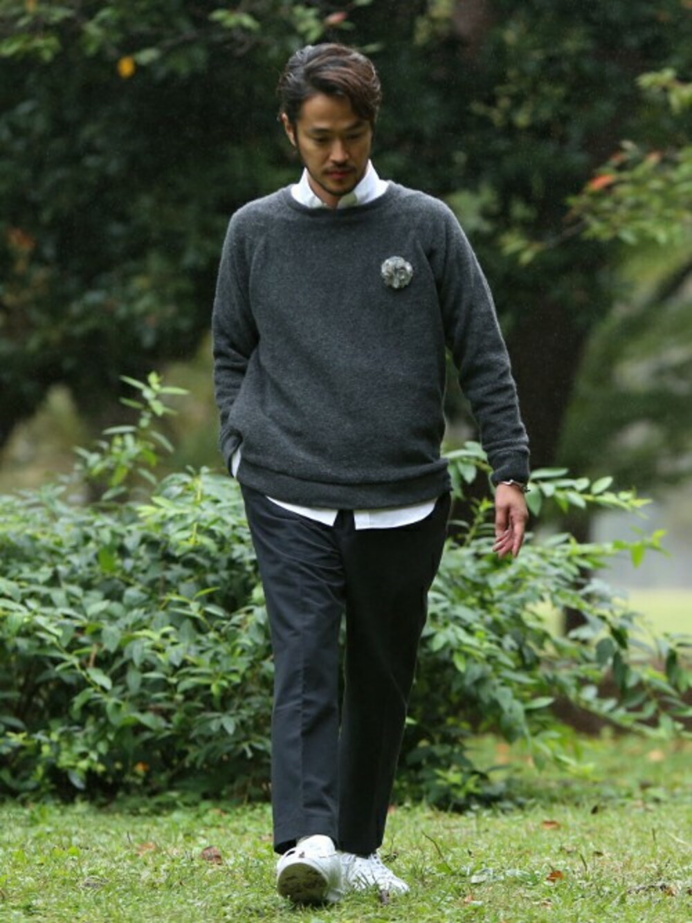 EDIFICE 本社のスラックス「【MENS NONNO11月号掲載】100/2*10/-ツイル テーパードトラウザー」を使ったコーディネート
