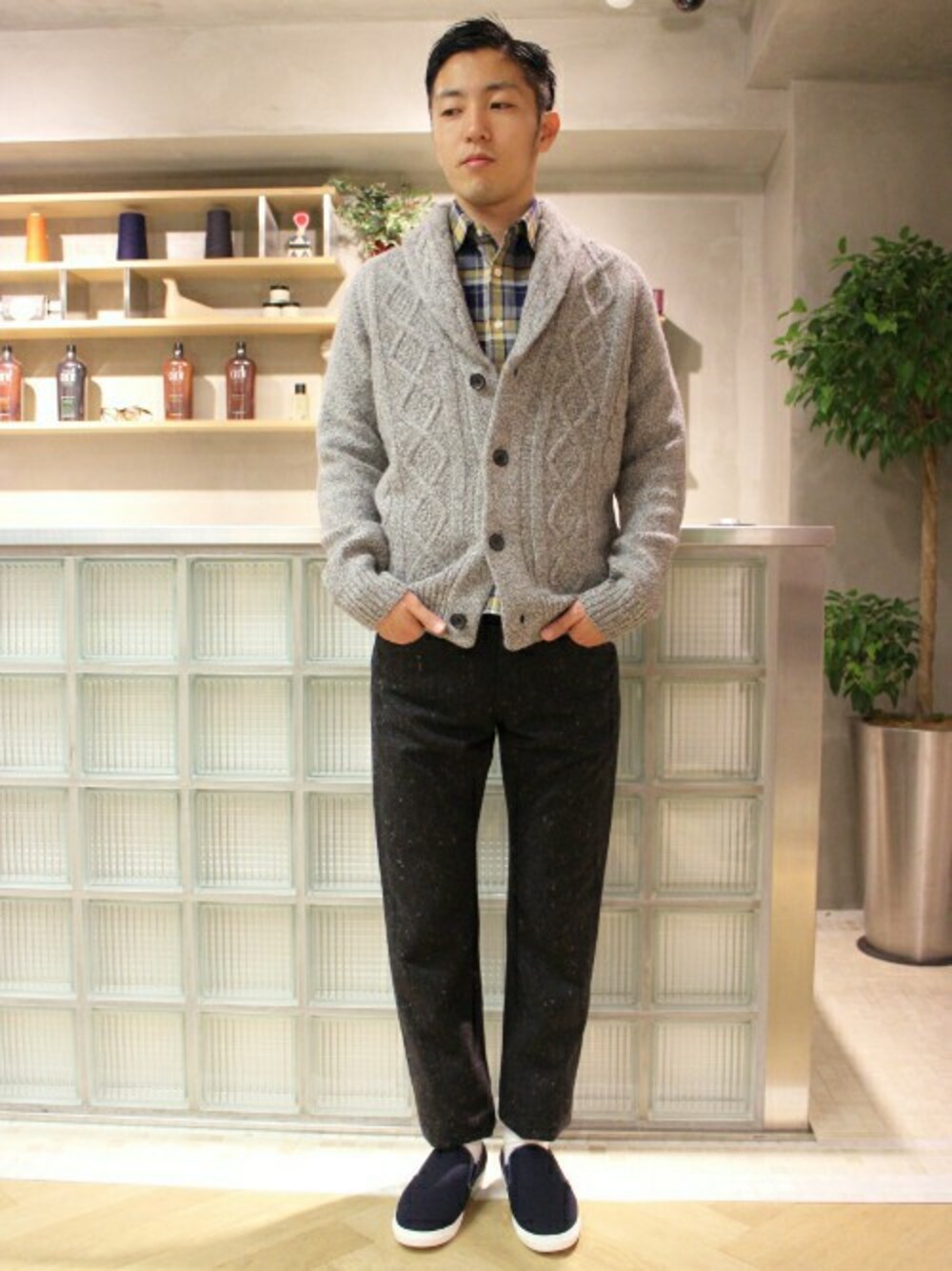 EDIFICE 本社のカーディガン/ボレロ「◇LAMBケーブルショール カーディガン」を使ったコーディネート