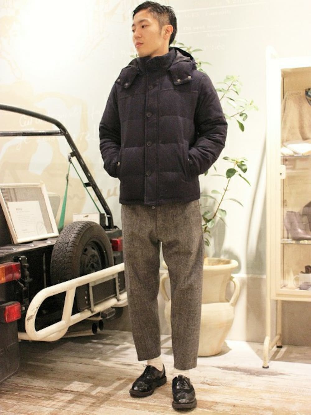 EDIFICE 本社のダウンジャケット/コート「◇ヘリンボーンフードダウンブルゾン」を使ったコーディネート
