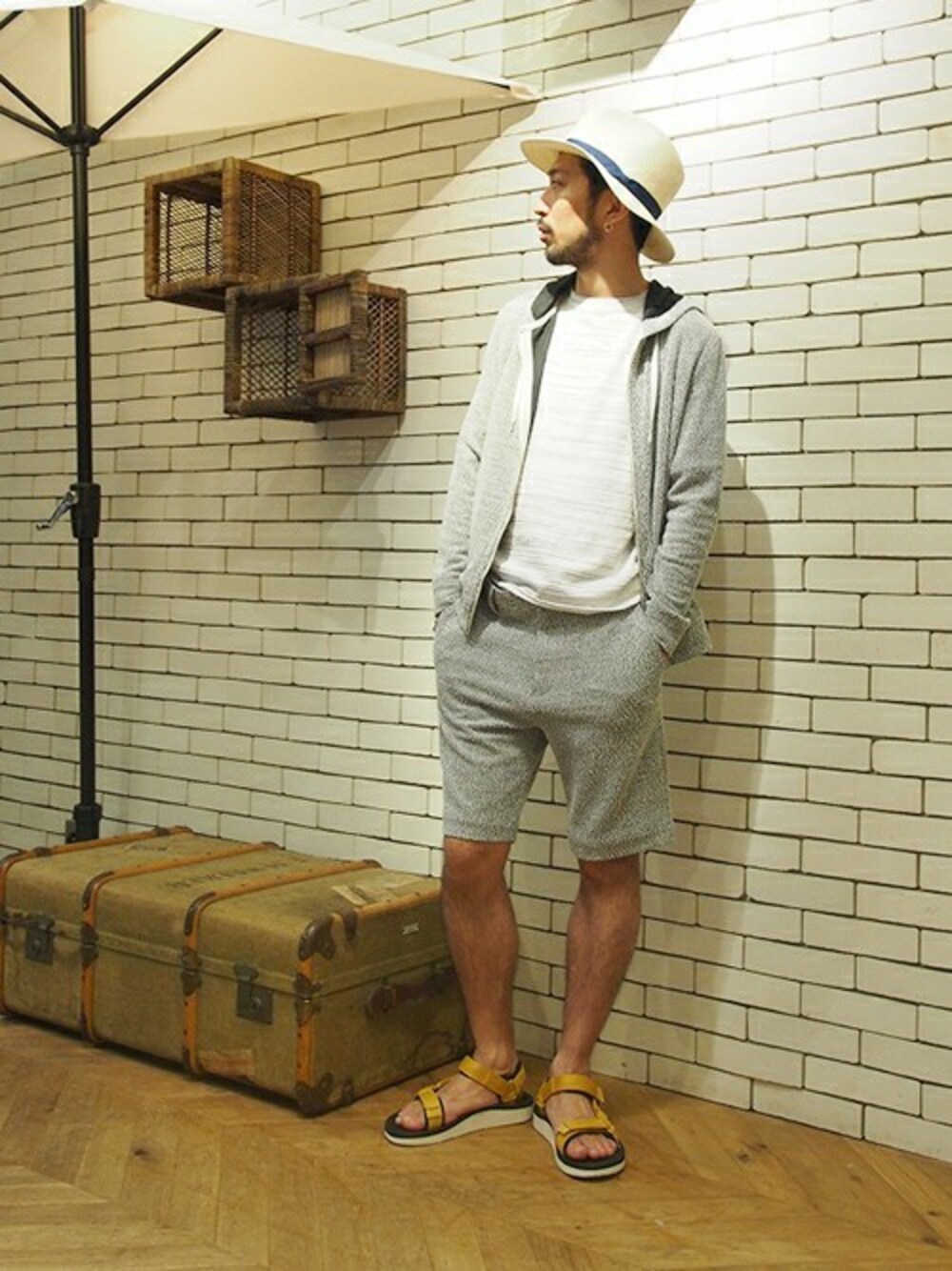 リゾートライクなスタイリングも、素材感でラフすぎない少しこなれた印象に。色も抑え明るい色中心にすることで涼しさもプラス。