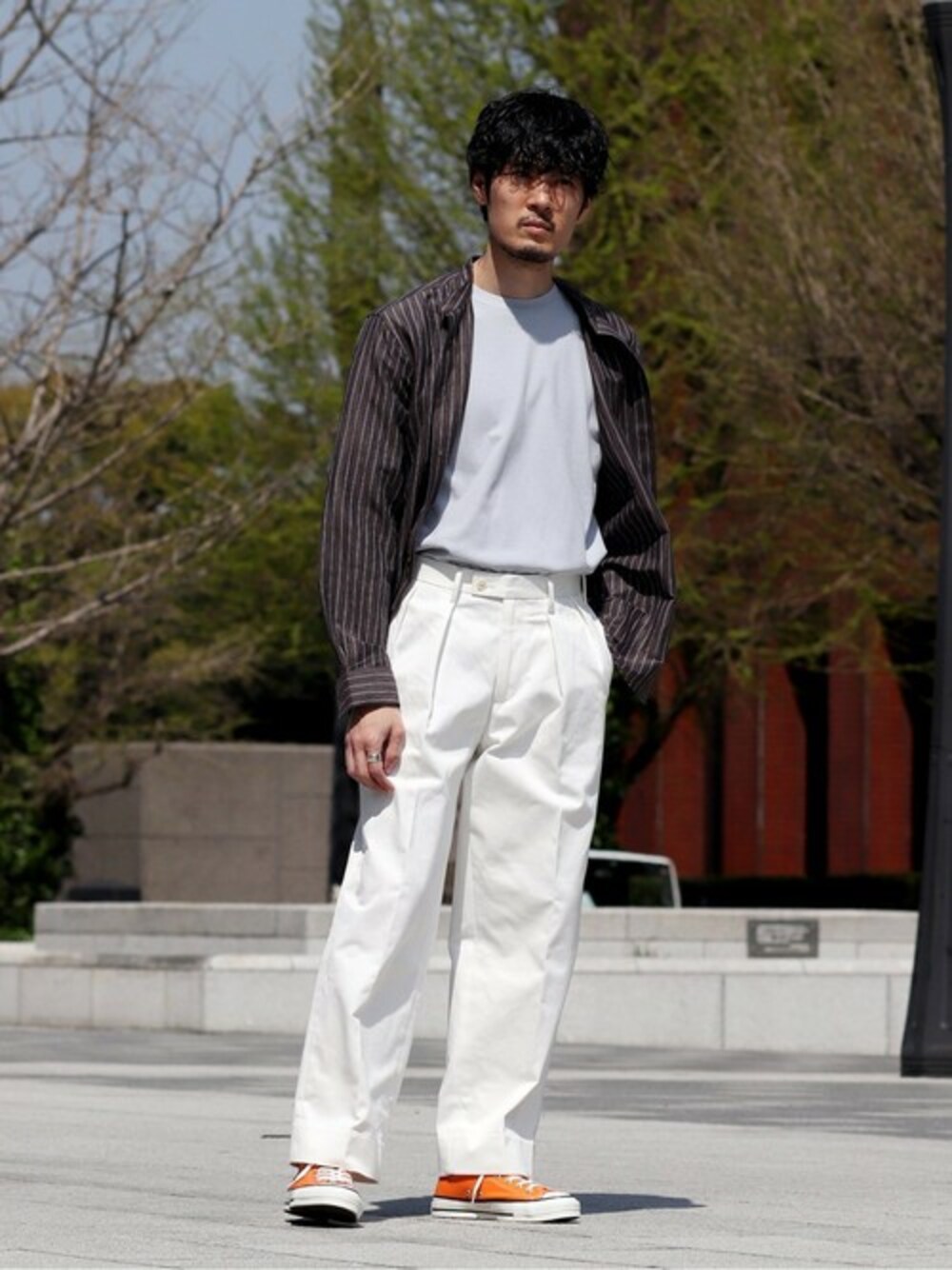 【コットン / リネン ワッシャー ストライプ バンドカラーシャツ】 コットンとリネンの通気性とドライな肌触りで、快適な着心地のバンドカラーシャツ。 バンドカラーを軽羽織として使い、春らしいカラーリングで上品に。 身長:171cm / 普段サイズ:M / 着用サイズ:M サイズ感: ややゆとりのあるすっきりとしたサイズ感 素材感:コットンリネンのシャリとしたドライタッチ 着心地: 柔らかく軽い着心地