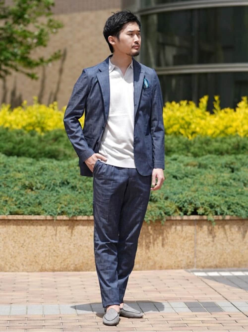 EDIFICE OFFICIAL(PULP 417 EDIFICE)のテーラードジャケット「CRS 3B ジャケット スラブシャンブレー」を使ったコーディネート