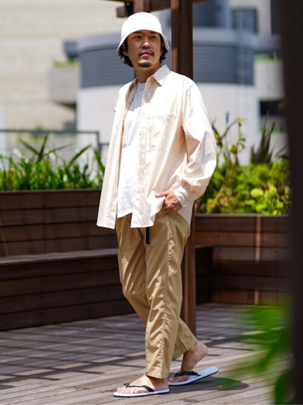 【GRAMICCI EX クールマックスサッカーエバーグリース】 大人の別注グラミチパンツ ◾️モデル身長:176cm ◾️普段サイズ:L.XL ◾️着用サイズ: XL ◾️サイズ感: 細身 ◾️素材感: シアサッカー ◾️着心地:サラッとしていて涼しい