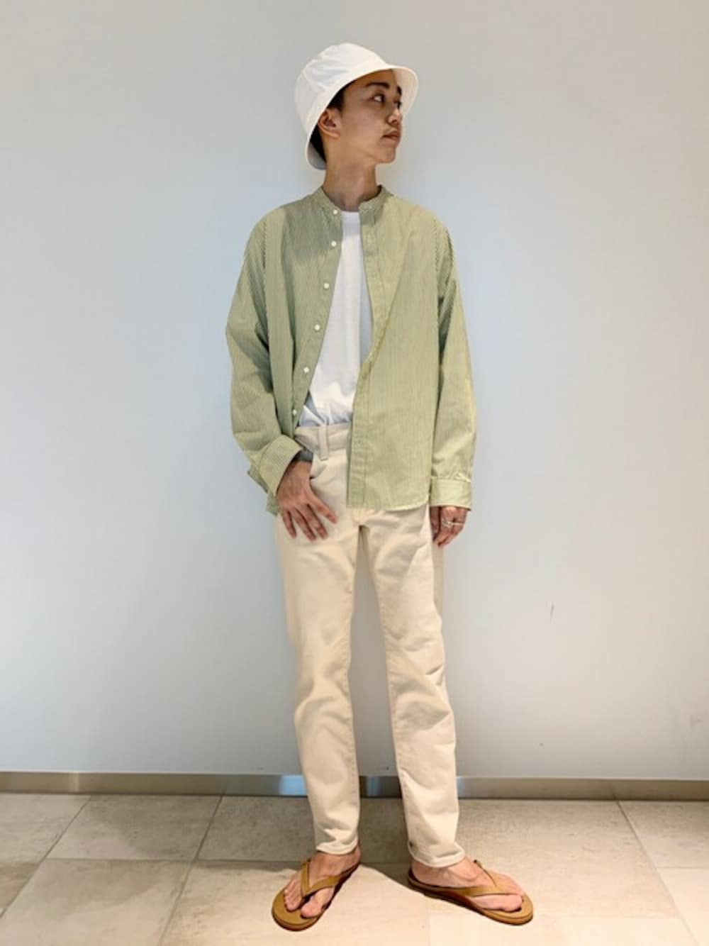 EDIFICE OFFICIAL(PULP 417 EDIFICE)のシャツ/ブラウス「THOMAS MASON / トーマスメイソン ストライプバンドカラーワイドシャツ」を使ったコーディネート