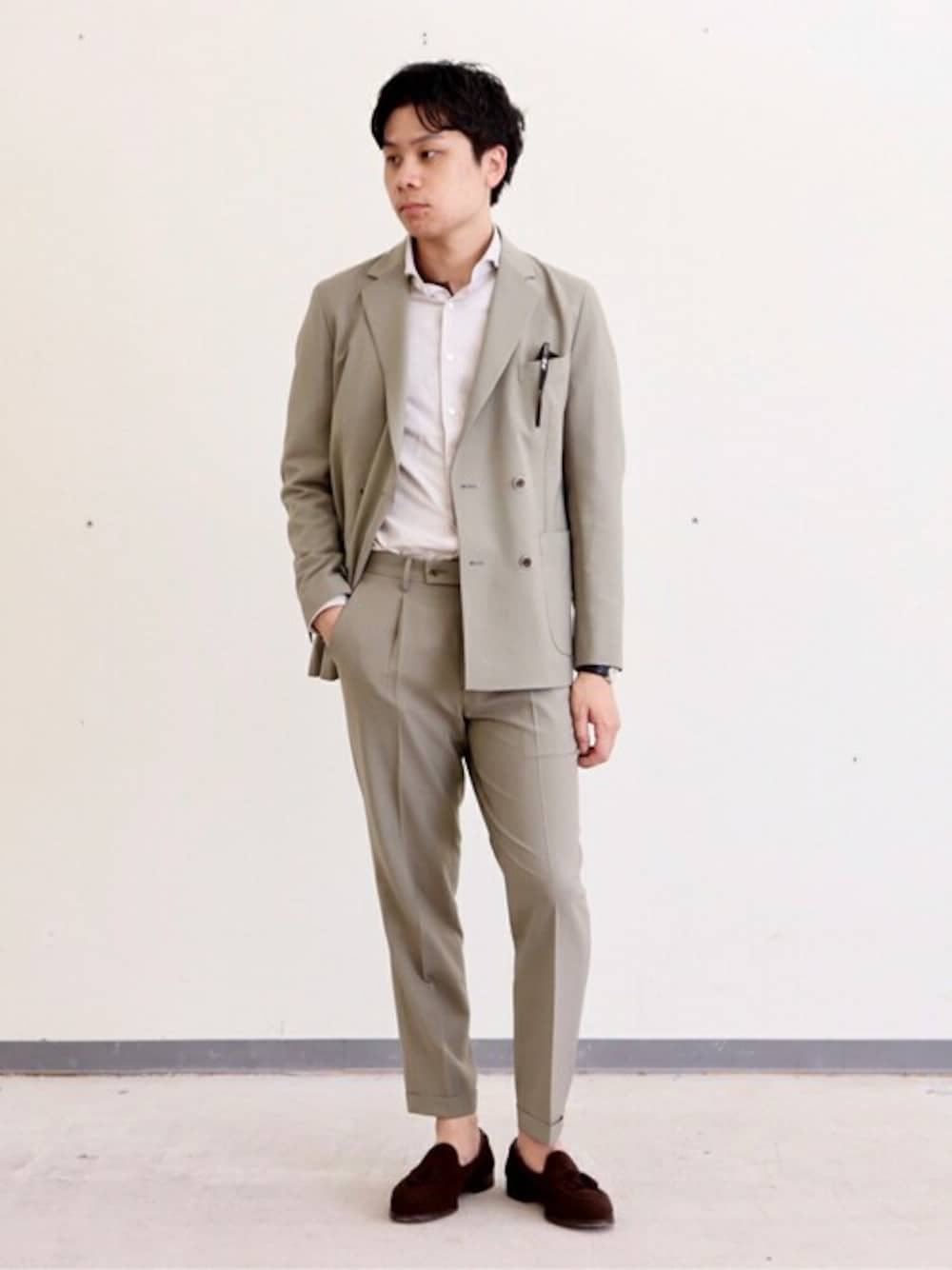 EDIFICE OFFICIAL(PULP 417 EDIFICE)のテーラードジャケット「VERTICAL カルゼ ダブルブレスト ジャケット【セットアップ着用可能】」を使ったコーディネート
