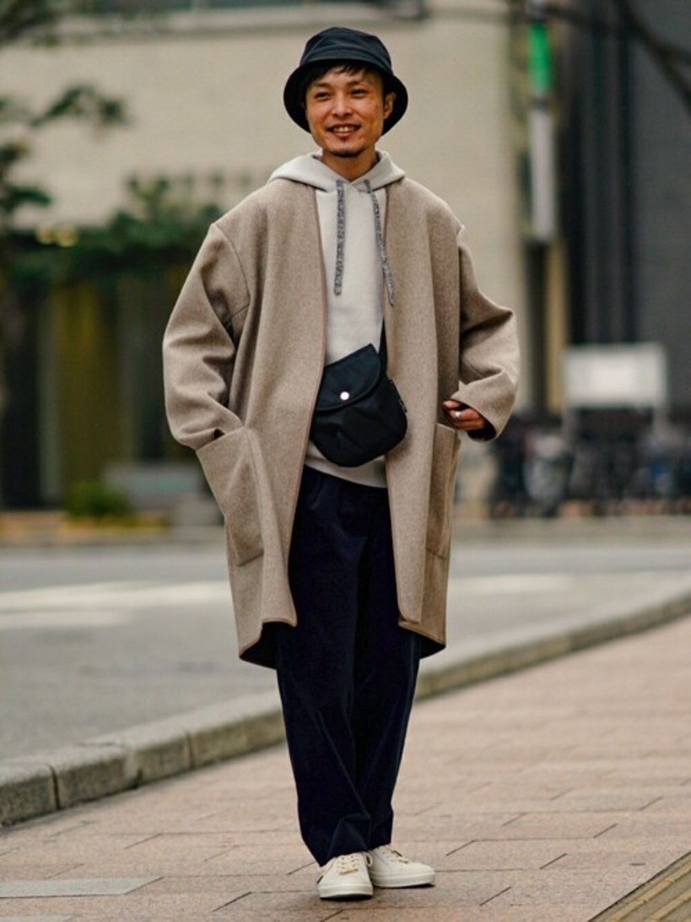 EDIFICE OFFICIAL(PULP 417 EDIFICE)のその他アウター「ノーカラー ウールリバーコート」を使ったコーディネート