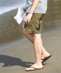 【NIKE SWIM / ナイキ 別注 スウッシュ プリント ボードショーツ】 30代前半/身長:178cm/体型:やせ型/普段サイズ:L/着用サイズ:M コーディネートポイント:ビーチで過ごす大人のリラックスカジュアルスタイル。 落ち着きあるカーキのカラーをボーダーTシャツとリネンシャツでデイリーな印象にまとめました。 落ち着きある大人カジュアルスタイルに取り入れるスタンダードなスタイリングのひとつかと思いますが、もちろん水着として着用し、海で思いっきり遊ぶのにもおすすめです。 着心地・サイズ感:自身の体型でMサイズを着用して、丁度良く着用できるサイズ感。 スイムショーツ型の為、膝がしっかり出る短めのレングスバランスで全体的にすっきりとした印象を与えることができます。