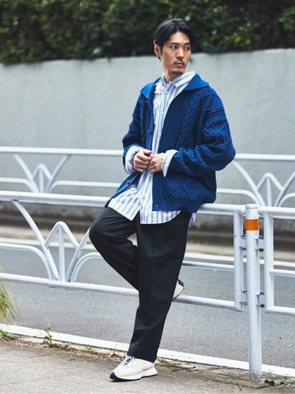 スポンディッシュ リラックス ケーブル ニットカーディガン 30代前半/身長:171cm/体型:やせ型/普段サイズ:M/着用サイズ:L コーディネートポイント:発色の良いブルーを引き立たせる、シンプル&クリーンなコーディネート。きれいな中にも固すぎない少しスポーティなニュアンスも取り入れました。 着心地:リラックスフィットの為ストレスを感じない着心地。 サイズ感:自身の体型でLサイズだとゆったりとしたサイズ感。