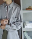 【THOMAS MASON】オーバーサイズ レギュラーカラー シャツ 30代前半 / 身長:175センチ、痩せ型 / 普段サイズ:M/ 着用サイズ:L 赤みのある独特なグレーのシャツにカーキのスラックスを合わせて、正統派ではないカラー同士でのモダンな組み合わせを狙いました。 ともすればぼんやり見えがちな配色ですが、足元の黒のレザーシューズでメリハリを演出しました。 サイズ感:ゆとりのあるリラックスしたシルエットです。 素材感:ツヤのある滑らかな肌触り。ハリコシもあるコットンです。 着心地:サイズ感も相まってストレスのない着心地。