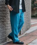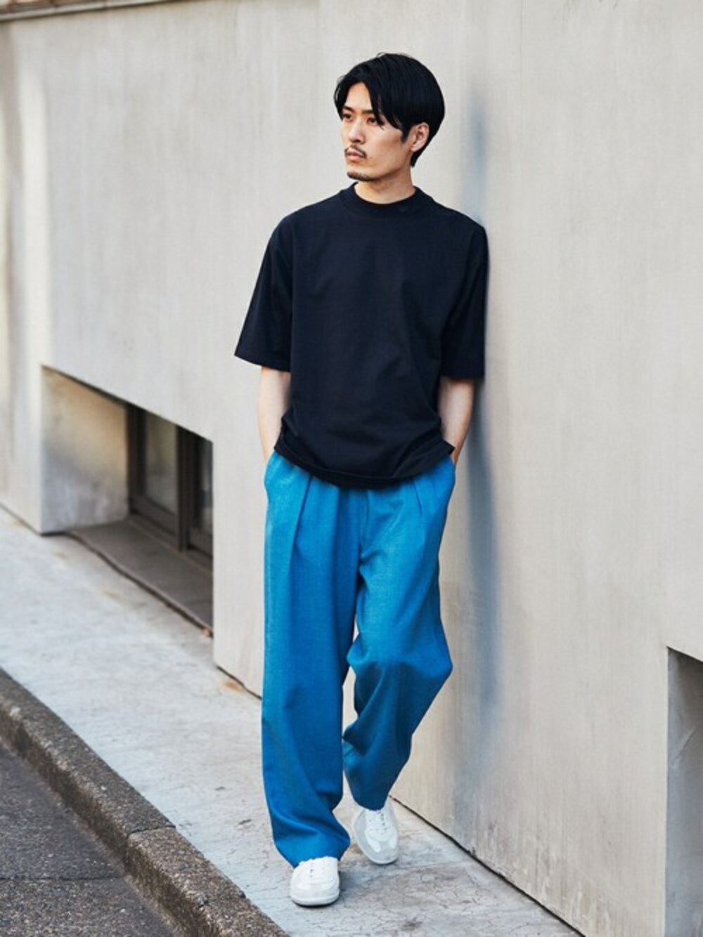 【LA BOUCLE / ラブークル】1タック イージーパンツ(スラブ オックス) 30代前半/身長:171cm/体型:やせ型/普段サイズ:M/着用サイズ:2(Mサイズ相当) コーディネートポイント:目を惹くカラーパンツを引き立たせるシンプルなカジュアルスタイル。テイストを問わない万能なパンツですが、今回は少しスポーティな雰囲気でコーディネートしています。 サイズ感:自身の体型で2を着用すると程よくゆとりのあるサイジングになります。ウエストも余裕があるので1のサイズも問題なく着用可能です。 着心地:シャリ感のある素材感で肌離れが良くシルエットもゆったりしているのでストレスを感じない着心地。