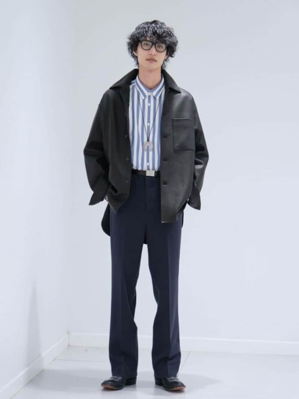【EDIFICE】 ネイキッドラムレザー ワンピースカラーシャツ Instagram ⇒ a.a.edy 今季のEDIFICEらしい、大人の知的さと男らしい武骨さを兼ね備えたスタイル。 サイズ感はオーバーサイズすぎず、程良いゆとりを持たせるのがポイントです。 年齢:30代前半/身長:182センチ/体型:細身/普段サイズ:L/着用サイズ:L サイズ感:少しゆったりめのサイズ感。身長182cmの自分はLサイズでちょうど良いサイズ感 素材感:光沢、上品さが伝わるラムレザー 着心地:見た目の重厚感に反して軽く、シャツとして羽織りやすい。ライトアウターのようにも着れる為、汎用性も高い