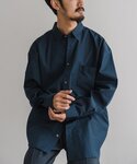 【THOMAS MASON / トーマスメイソン】オーバーサイズ レギュラー シャツ コーディネートポイント:シックなネイビートーンのシャツスタイル。足元の無骨なレザーブーツでスパイスを利かせています 着心地・サイズ感:自身の体型でLサイズを着て、たっぷりとしたサイジングで着用できます。高級感がありハリのある生地感です。