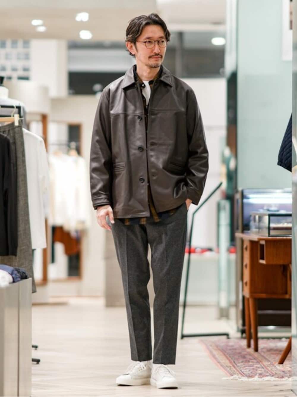 EDIFICE OFFICIAL(PULP 417 EDIFICE)のカバーオール「シープレザー カーコート」を使ったコーディネート