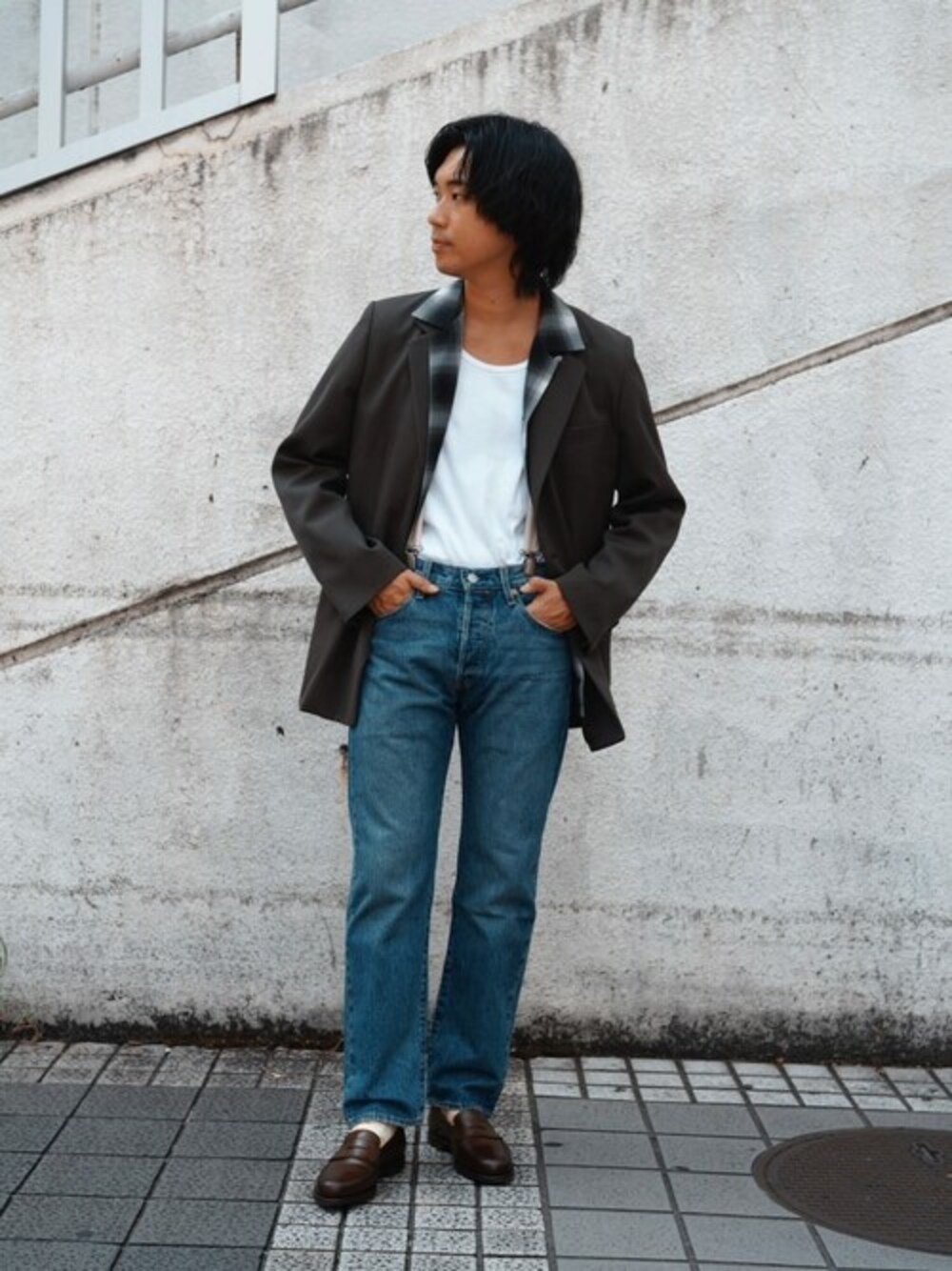 【Levi’s/リーバイス】別注501(R) ORIGINAL DARK INDIGO L28 オンブレシャツにデニムのカジュアルなスタイルを ジャケットとローファーでドレス解釈に ■仕様 ・100%コットン(14.6oz) ・ストレートフィット ・ボタンフライ ・5ポケット ・革パッチ ・BIG-E ・銅製リベット ・ホワイトバータック
