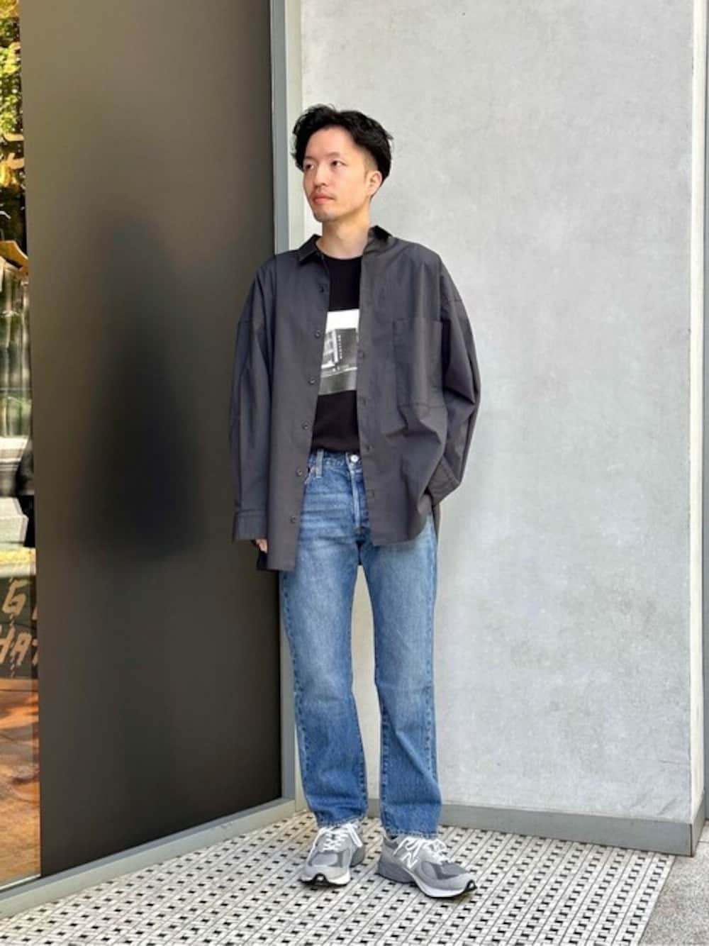 身長 : 173cm / 体型 : 細身 / 普段サイズ : M or L / 着用サイズ : M / 年齢 : 30代 サイズ感 : シャツ→オーバーサイズ、パンツ→すっきりとしたフィッティング 素材感 : シャツ→ややハリのある生地 着心地 :シャツ→軽めの着心地、パンツ→細すぎずのきれいなフィッティング オーバーサイズのシャツをメインにその他はタイトにメリハリのあるスタイリングにしています