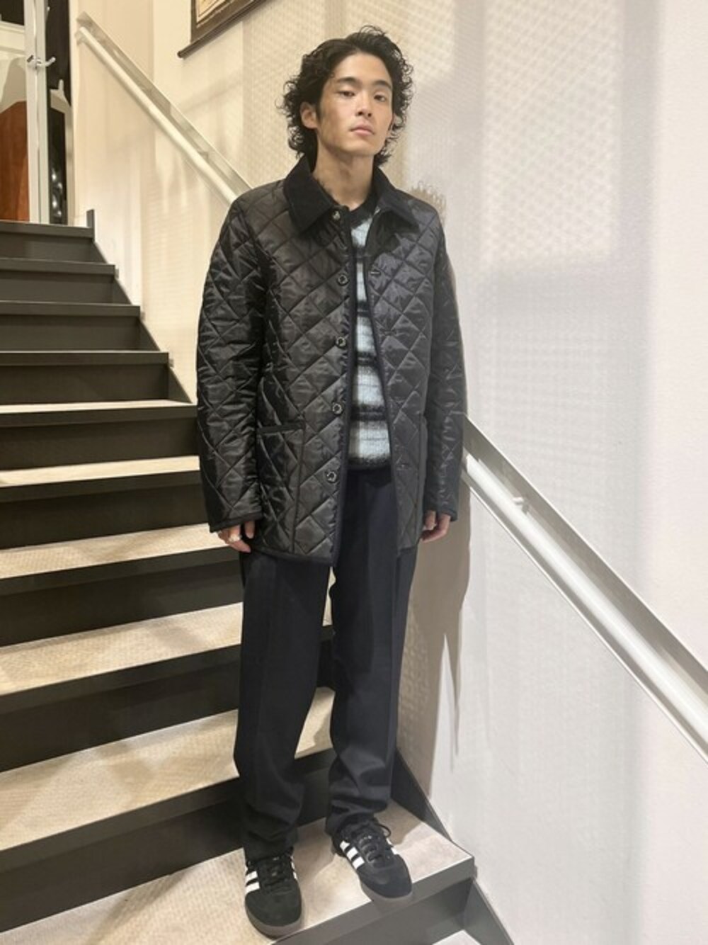 【MACKINTOSH / マッキントッシュ】別注 WAVERLY ナイロン instgram→yuto1204yuto クラシックな装いでスラックス合わせで インナーにシャギーニットを着用し、抜け感を演出。 身長:168cm/体重:53kg/普段サイズ:L/ 着用サイズ:M サイズ感:ジャケットや厚手のニットを着用しやすくなるように、アームホールや袖周りを着やすく修正。 素材感:上品な艶を感じるナイロン素材を使用。