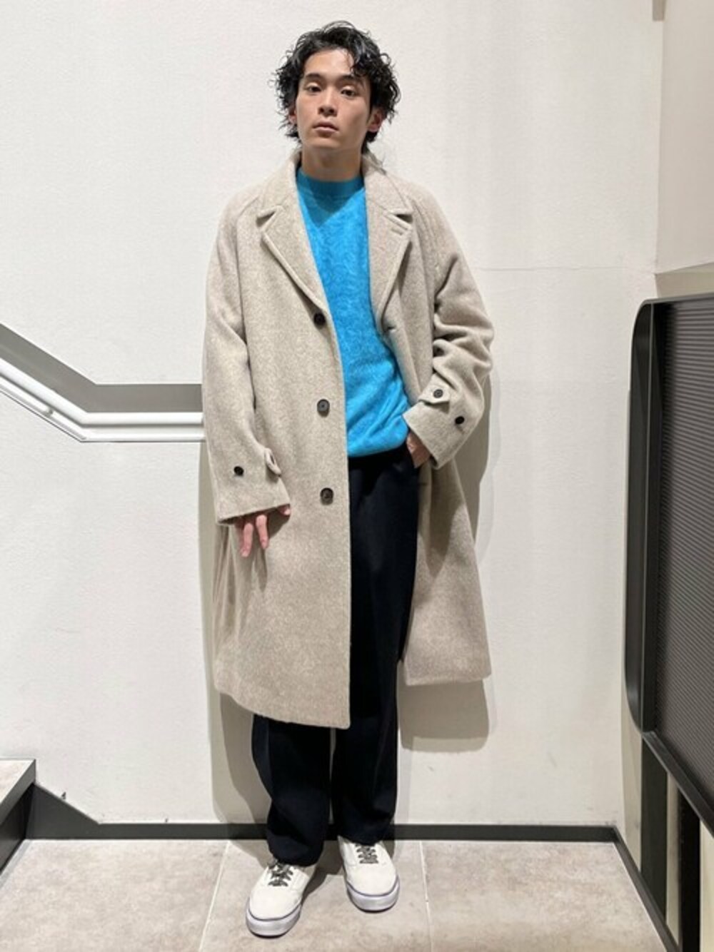 【ReWOOL(R) / リウール】シャギーオーバーコート instgram→yuto1204yuto クリーンなイメージでコートとインナーの色合わせを意識しました。 外しでボロ加工のvansを持ってきて抜け感を出してます。 身長:168cm/体重:53kg/普段サイズ:L/着用サイズ:M サイズ感:オーバーサイズのフォルムがしっかりと出た立体感がありながらも、ベーシックなデザインに落とし込んでいる 素材感:シャギーを施した上質なウールベースの素材。