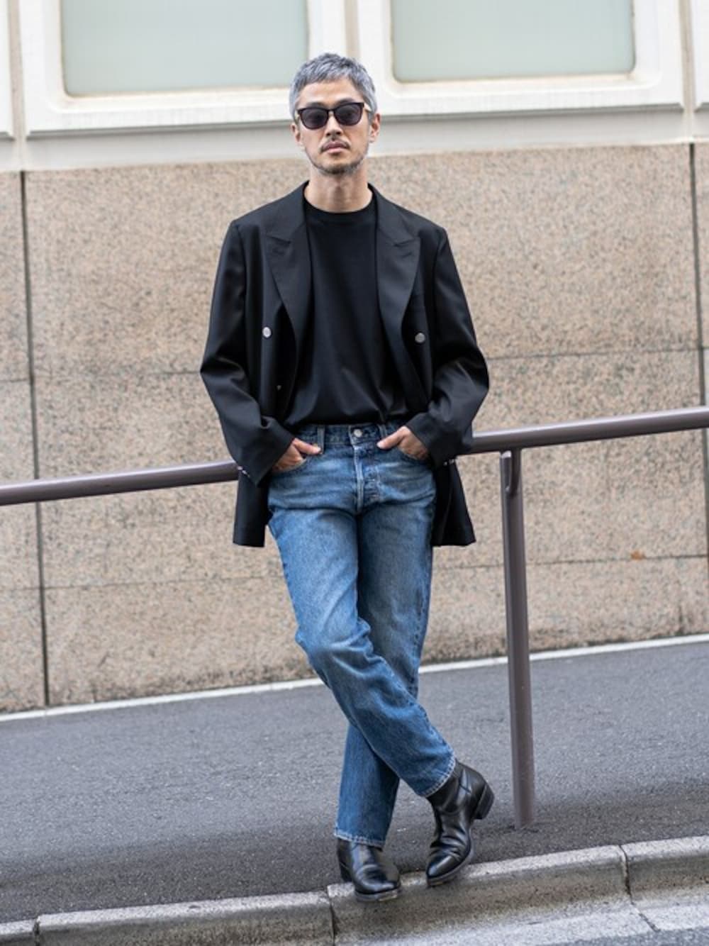 【Levi’s/リーバイス】別注501(R) ORIGINAL DARK INDIGO L28 40代前半 / 身長:172cm / 体型:標準型 / 普段サイズ:31 / 着用サイズ:31 コーディネートポイント:ブランドらしいJKのシックなスタイリング。上質なウール素材とデニムのギャップ感、ややオーバーシルエットのJKと細身のPTのギャップ感をバランス良く合わせています。 サイズ感:適度にゆったりとしたサイズ感 素材感:しっかりとしたデニム素材 着心地:初めから柔らかく馴染みの良い着用感