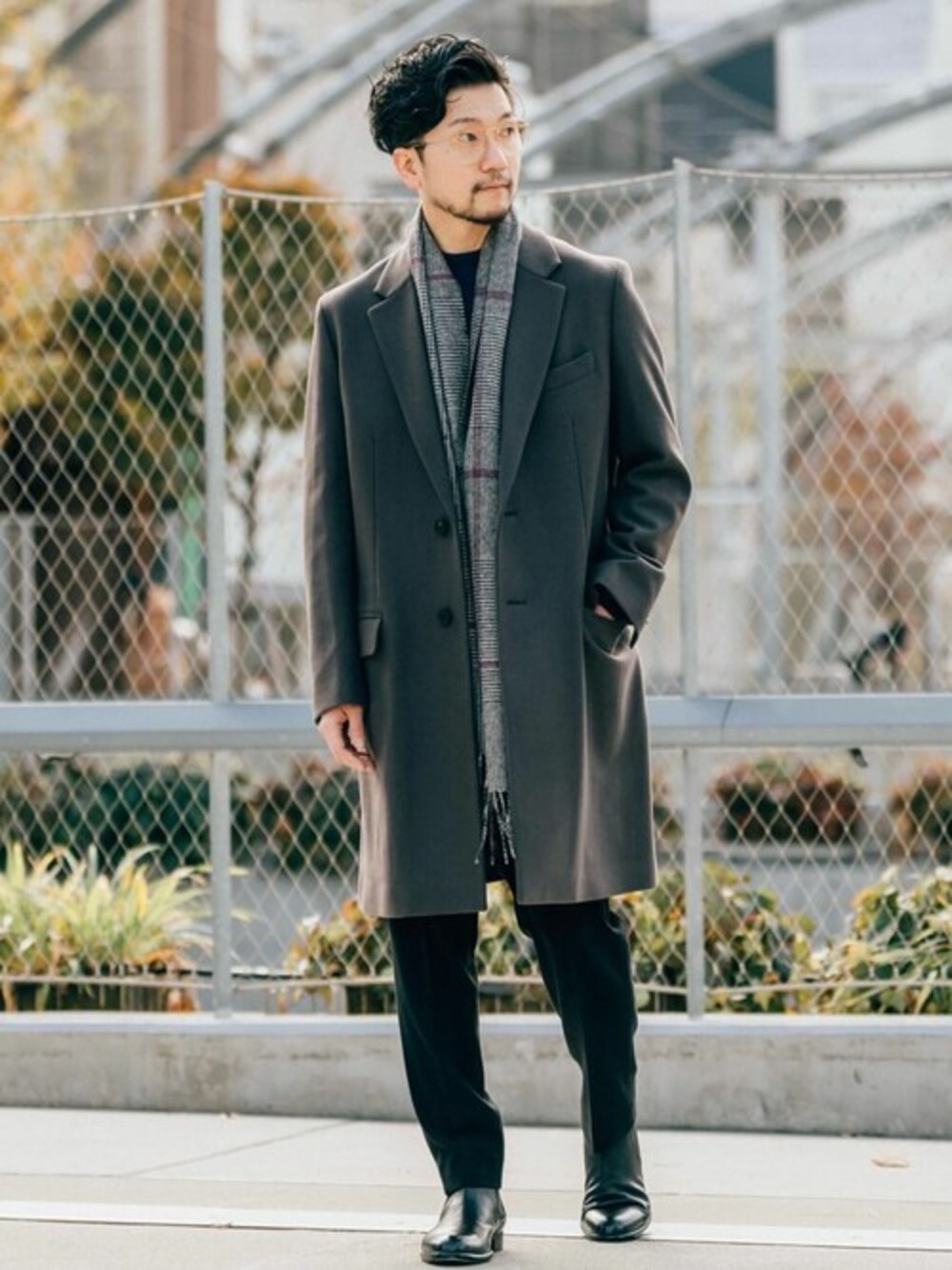 EDIFICE OFFICIAL(PULP 417 EDIFICE)のチェスターコート「SUPER 120’s ブレンド メルトン チェスターコート」を使ったコーディネート