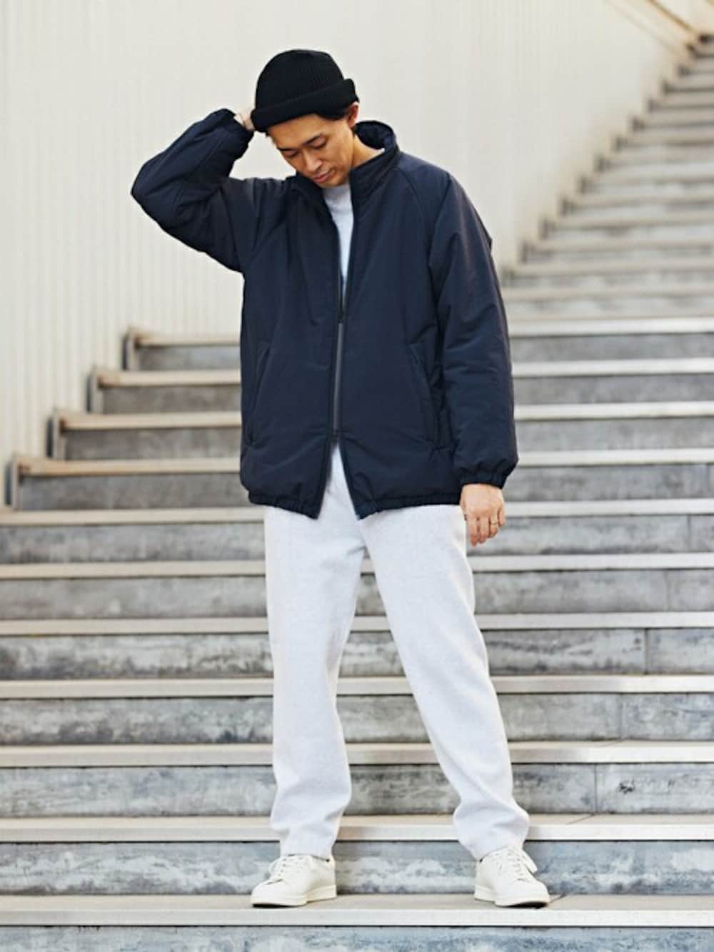 30代後半 / 身長:178cm / 体型:標準 / 普段サイズ:L マーケットにあふれる中綿アウターとは一線を画す、EDIFICEらしい拘りのある中綿アウター。 スウェットのセットアップでスポーティーに着こなしてみました。 休日などリラックスしたいときにおすすめのスタイリングです。 ■PE WEATHER PADDED スタンドブルゾン 着用サイズ:L ---------------------------------------------------------- サイズ感:ゆとりのあるサイズ感 素材感 :表面はマットな生地感でハリもあります 着心地 とにかく軽くて楽な着心地です ---------------------------------------------------------- ■【CALMER / カルメール】別注 オーガニックコットン クルーネック プルオーバー ■【CALMER / カルメール】別注 オーガニックコットン ニットスウェットパンツ 着用サイズ:L ---------------------------------------------------------- サイズ感:ゆったりとしたサイズ感 素材感:毛羽が少なく非常にクリーンな表面感 着心地:スムース編みなので膨らみがありシルエットが綺麗にでます ----------------------------------------------------------