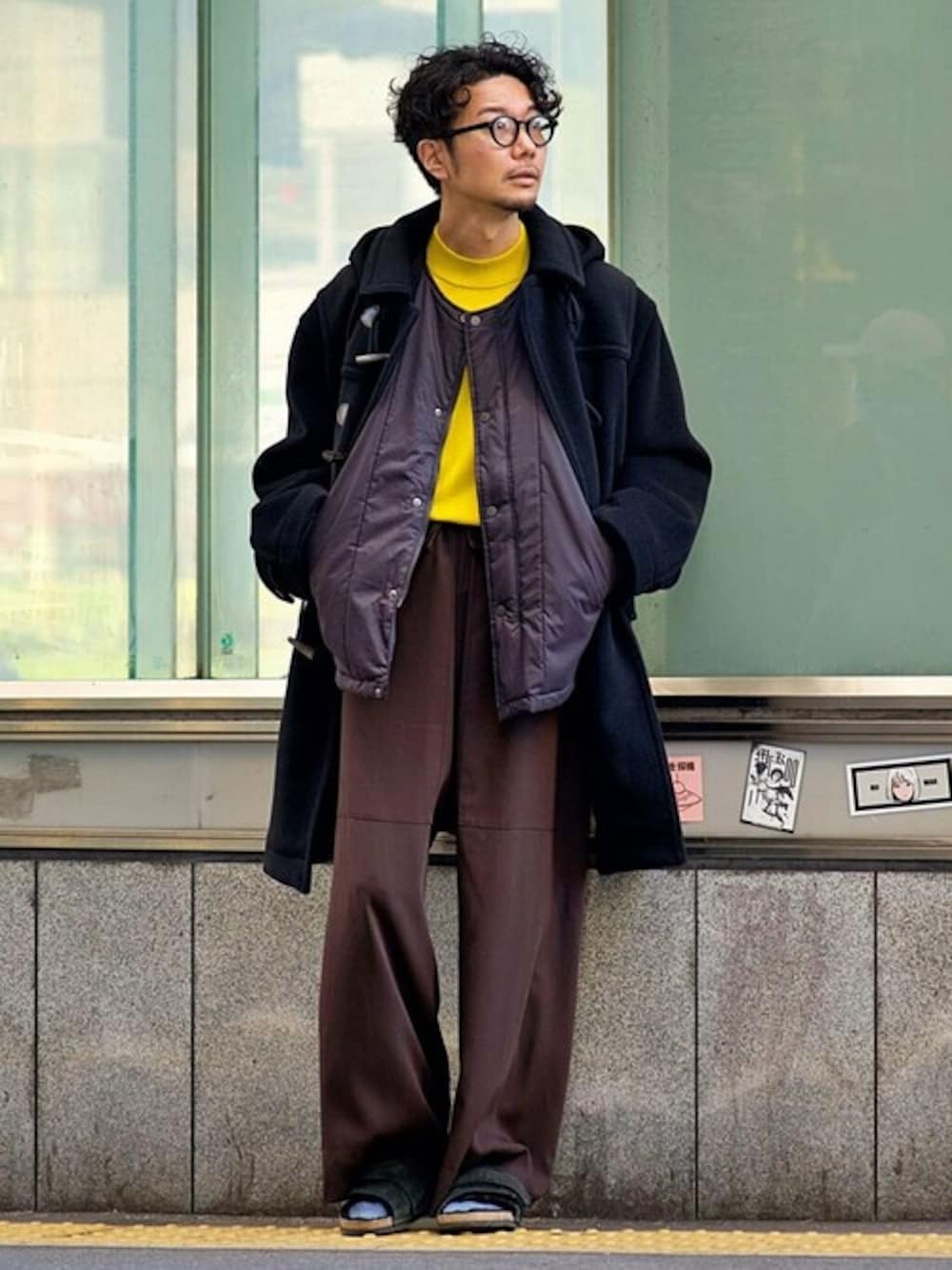 【INVERTERE / インバーティア】別注 デタッチャブルフードダッフル Instagram ⇒ miutake___ ブラックのダッフルに、ニットのイエローやパンツなど暖色系で合わせ、インナーダウンでナイロンの異素材を挟みました。 身長 : 178cm / 体型 : 細身 / 普段サイズ : M or L / 着用サイズ : 38 / 年齢 : 30代 サイズ感 : 結構大きめのサイズ感。 素材感 : ジョシュアエリスのウール生地。 着心地 : 大きめのサイズ感だが軽くて着やすいです。