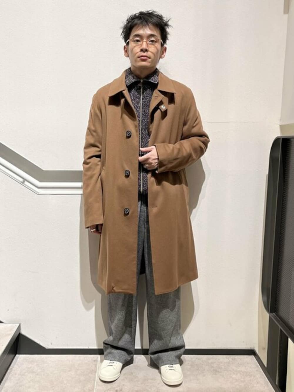 【MACKINTOSH / マッキントッシュ】別注 NEW DUNKELD BT ロロピアーナ instgram→yuto1204yuto 細身なコートにワイドパンツで全体的に Aラインのシルエットを意識しました。 身長:168cm/体重:53kg/普段サイズ:L/着用サイズ:M サイズ感:平面的な作りをより立体的にすることで体に自然に沿い着心地が格段に向上。 素材感:素材はEDIFICE別注ではお馴染みのロロピアーナ社の毛足のあるウールを使用。(レインシステム)