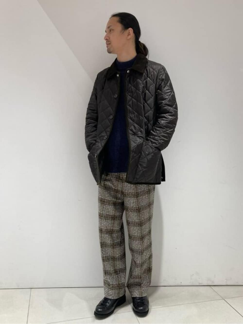 【MACKINTOSH / マッキントッシュ】別注 WAVERLY ナイロン チェック柄で英国調にコーディネート。 身長/174cm 体型/やせ型/普段サイズ/M 着用サイズ:36 サイズ感:程良いゆとりあるシルエット 素材感:軽い