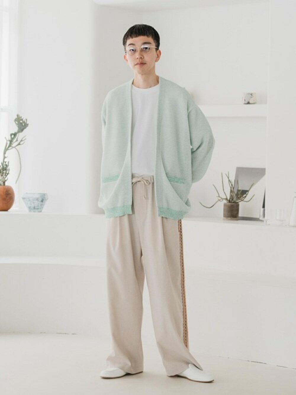30代前半 / 身長:175センチ、痩せ型 / 普段サイズ:M/ 着用サイズ:M メッシュ編みのトッパータイプカーディガン。 ミントグリーンが春夏らしくベージュなど淡いボトムとも相性◎ 大人のリラックススタイルにおすすめな一着です。 ■ギマコットン ミックスヤーン メッシュカーディガン 着用サイズ:L ---------------------------------------------------------- サイズ感:オーバーサイズまでいかないリラックス感のあるサイズ 素材感:コットン混による風合いを感じる素材 着心地:リラックス感のあるシルエットとドライな質感が着やすく感じます ---------------------------------------------------------- ■”撥水&汗染み防止機能” プロテック ポンチ Tシャツ 着用サイズ:L ---------------------------------------------------------- サイズ感:ややゆとりのあるリラックスフィット 素材感:程よいハリとしなやかさのあるコットン素材 着心地:サラッとした肌触りなので快適です ----------------------------------------------------------