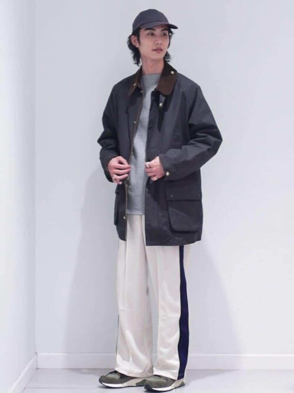 【Barbour for MARKAWARE】 EDIFICE別注 BEDALE ---------------------------------------------------------- Instagram ⇒ a.a.edy ---------------------------------------------------------- 別注Barbourを、別注Needlsと合わせて。 パンツの色味で軽さを出し、足元はパンツのシルエットに合わせて程良いボリュームのNew Balanceを。 ---------------------------------------------------------- 年齢:30代前半 身長:182センチ 体型:細身 普段サイズ:L 着用サイズ:3 ---------------------------------------------------------- サイズ感:身長182cm細身の自分がオーバーに着るなら3がちょうど良いです。オーバーコートのようにバサッと着用できるサイズです。 素材感:オイルドコットンではなく、ハリのあるベンタイルコットン。防水性がある生地です。 着心地:従来のオイルドコットンのアウターと比べ軽く、サイズ感も相まって着やすい。気兼ねなくガバッと羽織りやすい印象です。着込めば秋冬、インナーをカットソーにすれば春も着用できます。