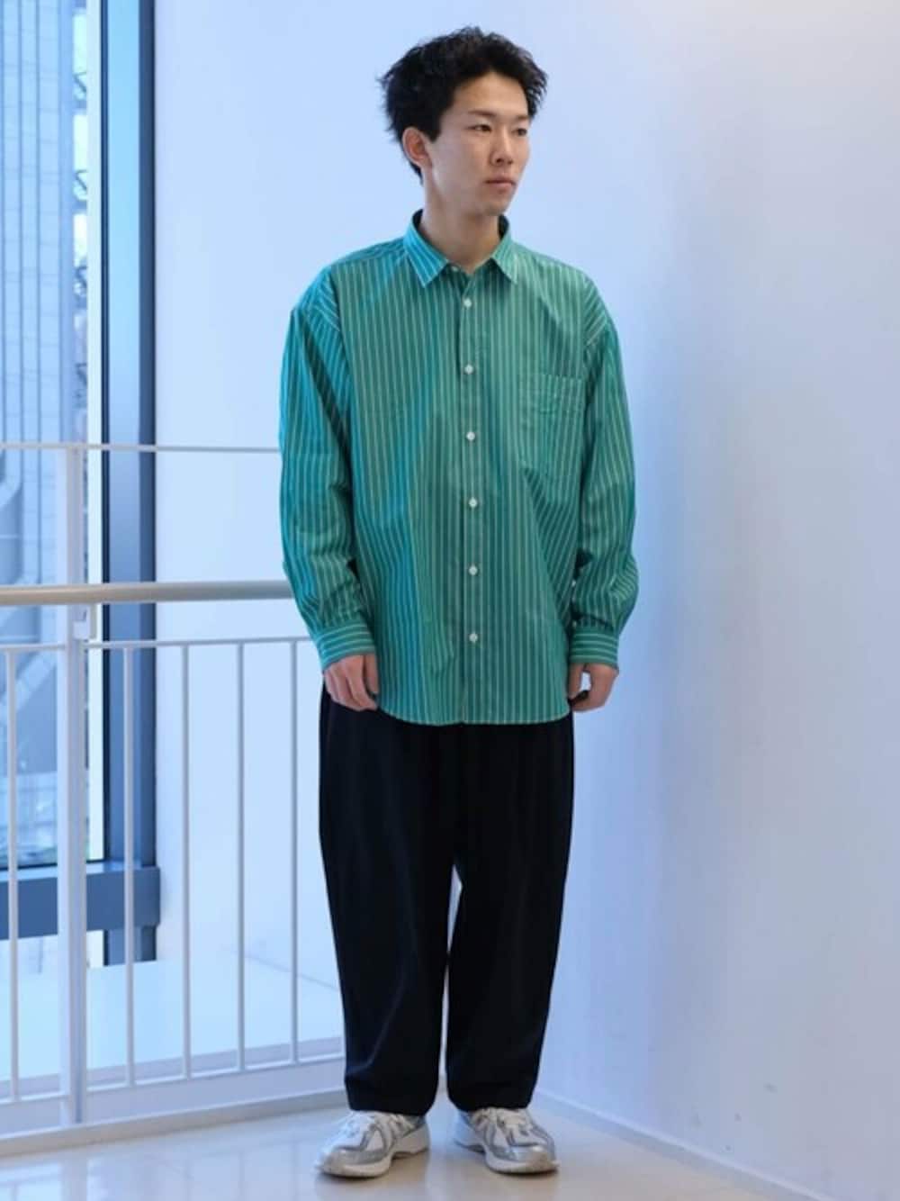 春らしく明るい色のシャツをメインに、パンツは軽さのあるナイロン素材のバルーンパンツで合わせました。 シャツは通常のサイズよりワンサイズ大きいサイズ感です。 【THOMAS MASON / トーマスメイソン】オーバーサイズ レギュラー シャツ 身長:169cm / 年齢:20 代/ 体型:標準/ 普段サイズ:M〜L サイズ: ゆったり 素材感:ツヤ、滑らかなコットン素材 着心地:とても着やすい、上品