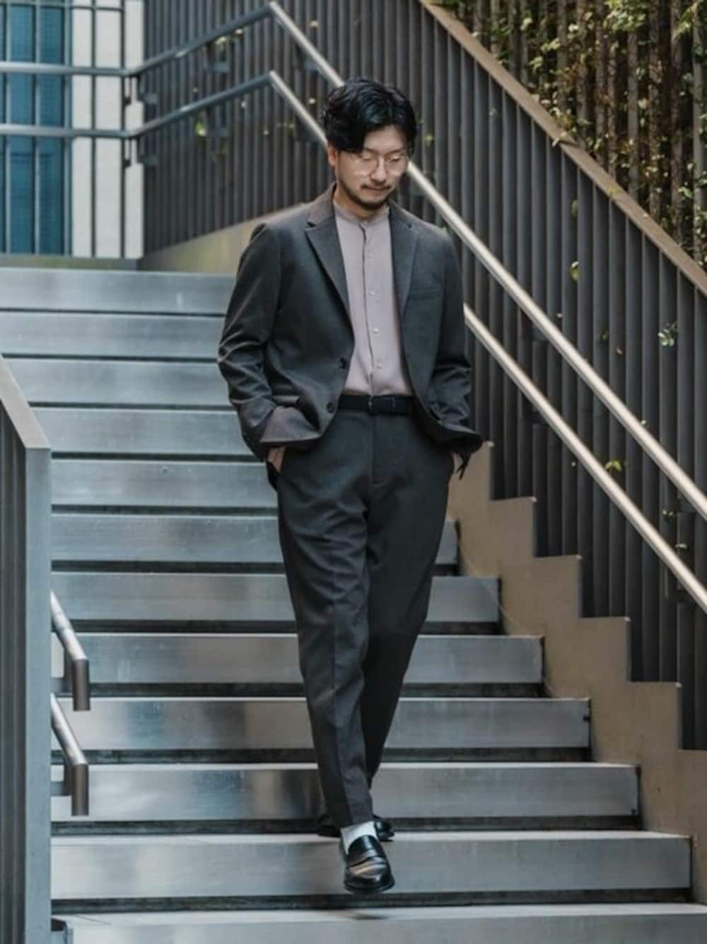 30代中盤 / 身長:170cm / 体型:標準体型 / 普段サイズ:M ブラウンのセットアップにベージュのシャツを合わせて落ち着いた雰囲気に。オンオフ問わず使いやすいバランスにまとめています。 ■ハウンドトゥース ジャージ 2Bジャケット ■ハウンドトゥース ジャージ イージー パンツ 着用サイズ:M ---------------------------------------------------------- サイズ感:ジャストサイズ 素材感 :シワになりにくいポリエステル×コットン素材 着心地 :ストレッチが効いていて着やすい ---------------------------------------------------------- ■ジョーゼット スタンドカラーシャツ 着用サイズ:L ---------------------------------------------------------- サイズ感:適度にゆったりとしたサイズ感 素材感:とろみ感のあるしなやかな素材 着心地:肌触りも良くサイズ感と相まって快適です ----------------------------------------------------------