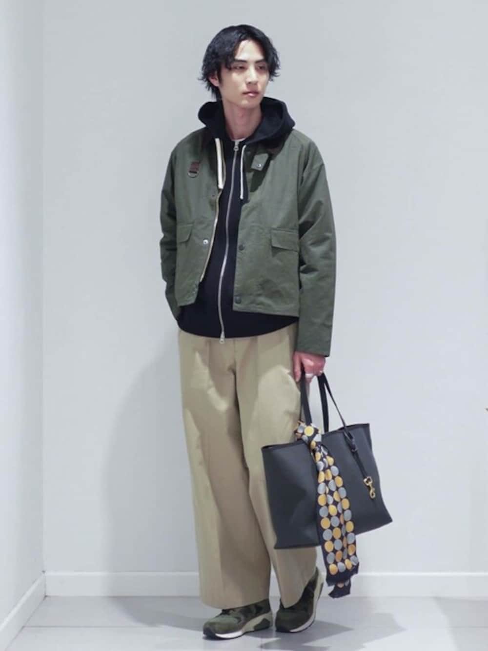 【Barbour】 OS Spey Casual ---------------------------------------------------------- Instagram ⇒ a.a.edy ---------------------------------------------------------- 短丈で人気の別注SPYを、大人カジュアルスタイルで。 スカーフはバッグに巻いたりするのもオススメです。 ---------------------------------------------------------- 年齢:30代前半 身長:182センチ 体型:細身 普段サイズ:L 着用サイズ:L ---------------------------------------------------------- サイズ感:ゆったりとしたサイズ感。身長182cm細身の自分が、Lサイズで身幅にゆとりがあります。 素材感:通年着用できるポリエステル×コットン素材。軽い生地です。 着心地:生地も軽く、短丈で動きやすいです。小柄な方や、太めのパンツを履く方にもオススメしたいです。